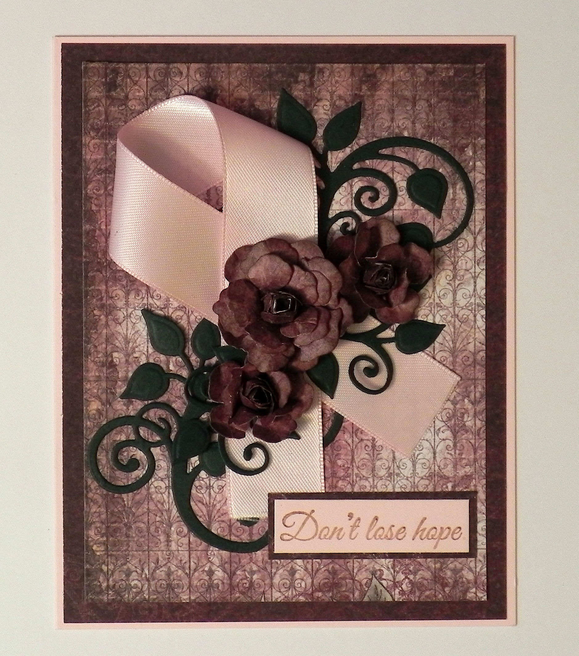 This card was made for Cat’s “Stamp Out Cancer – Challenge #3 – Just A Word!” challenge for StampTV. The challenge is a word prompt challenge where we get to pick a word and then make a creation that that ONE word inspires. MY WORD IS HOPE.  (Sadly, this site is no longer active.)