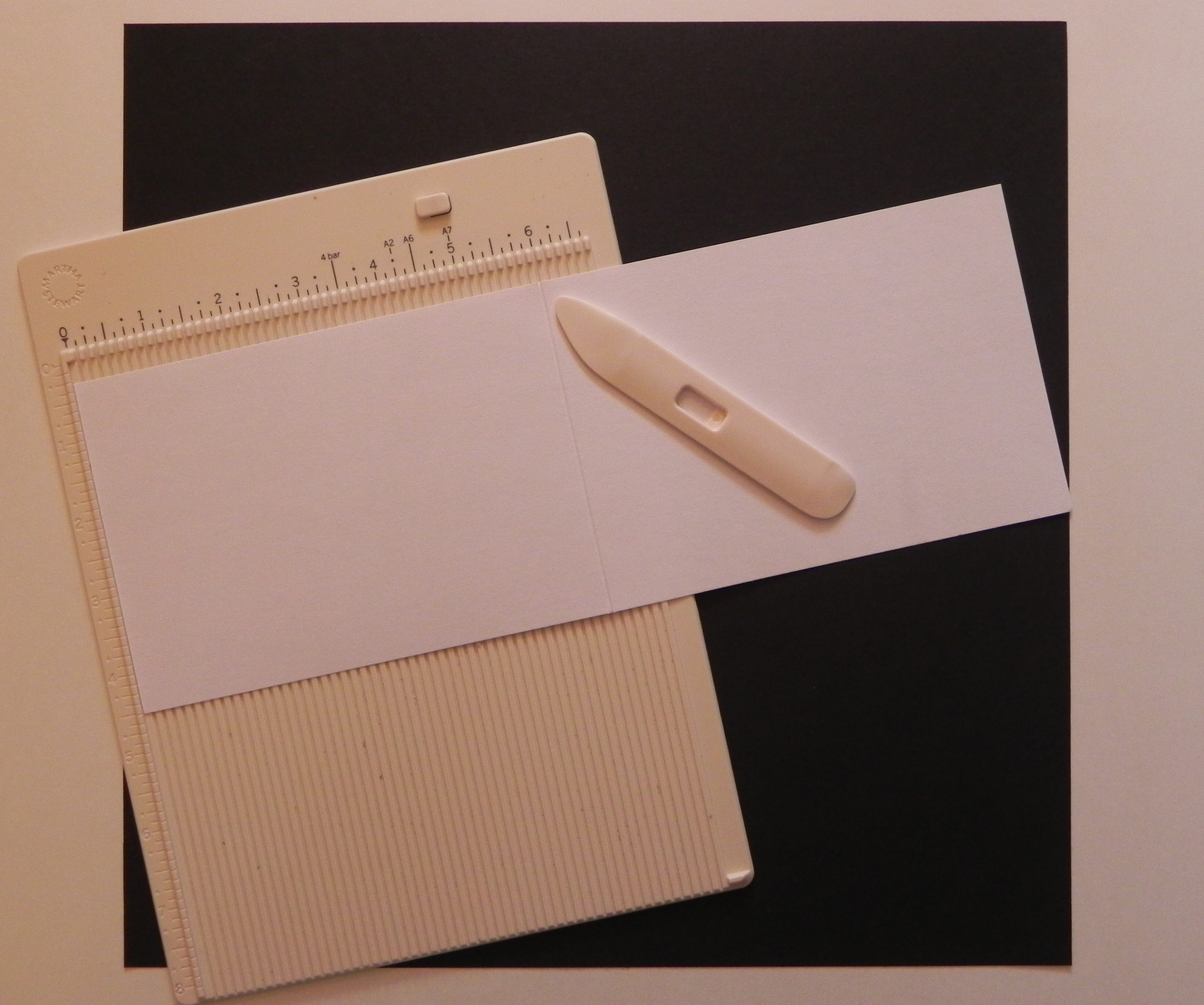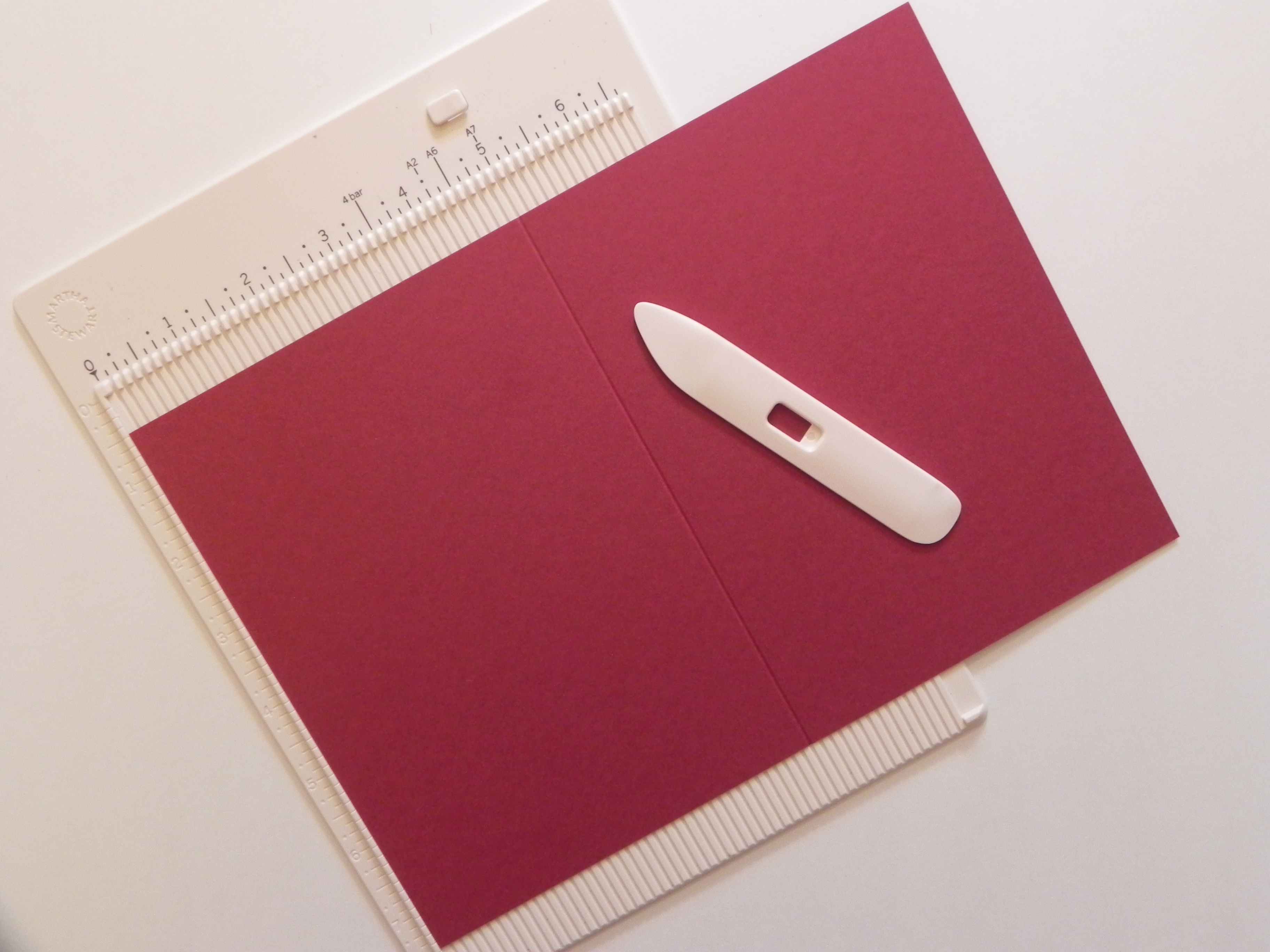 1. Cut card base 10″ x 7″ and score down center for a 5″ x 7″ card base.