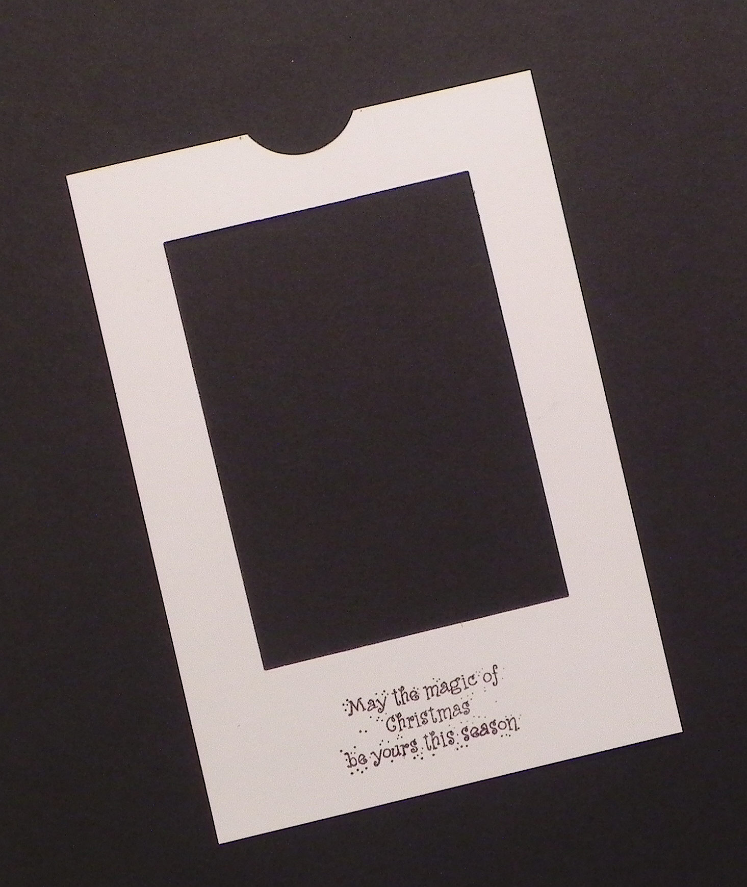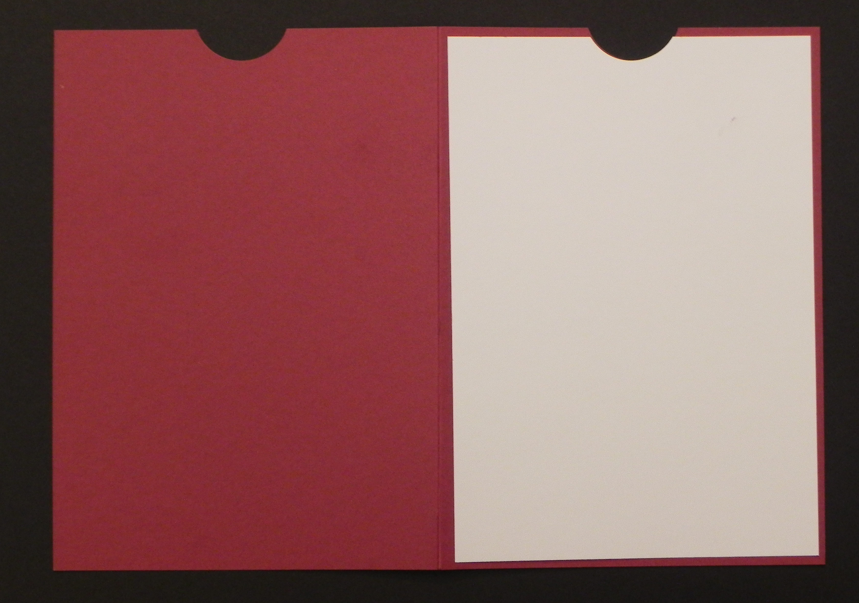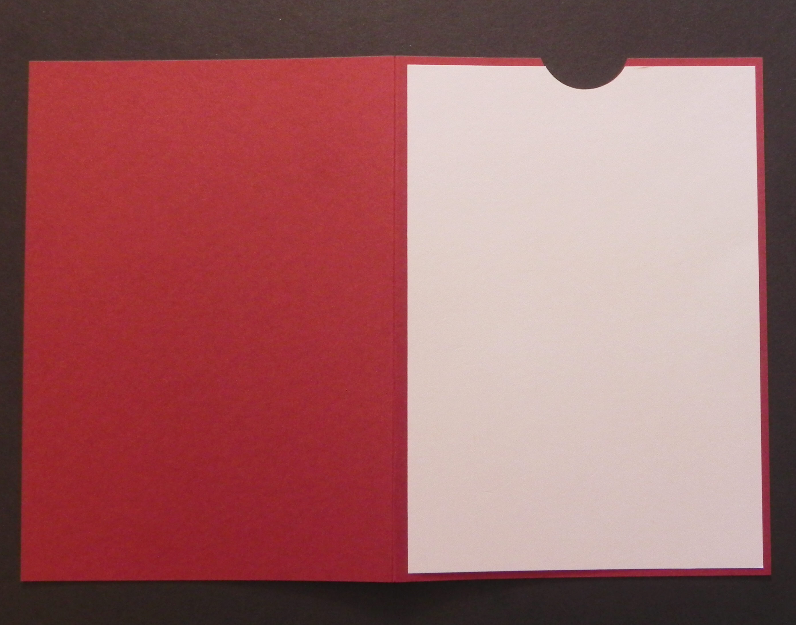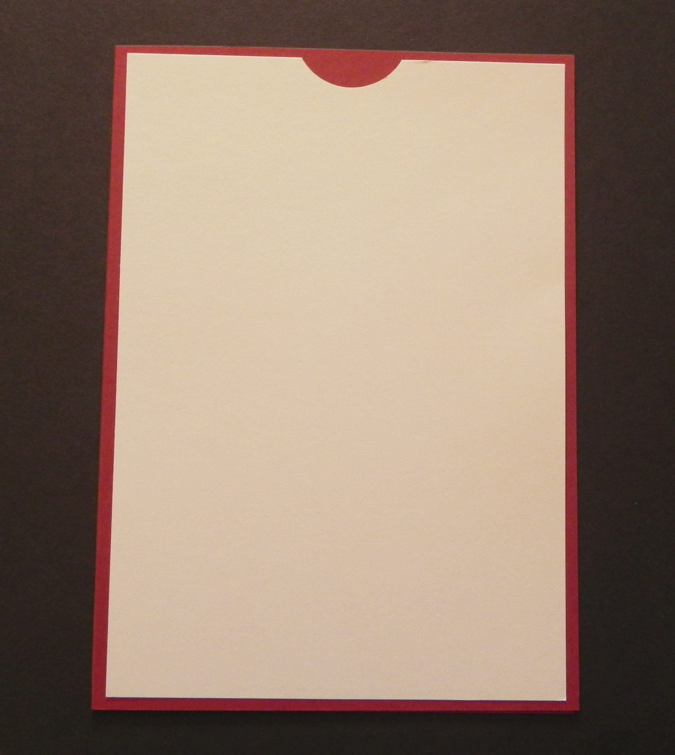 28. Take your other front panel (with just the semicircle cut out) and position it on the card base as desired. Do not glue it down yet.