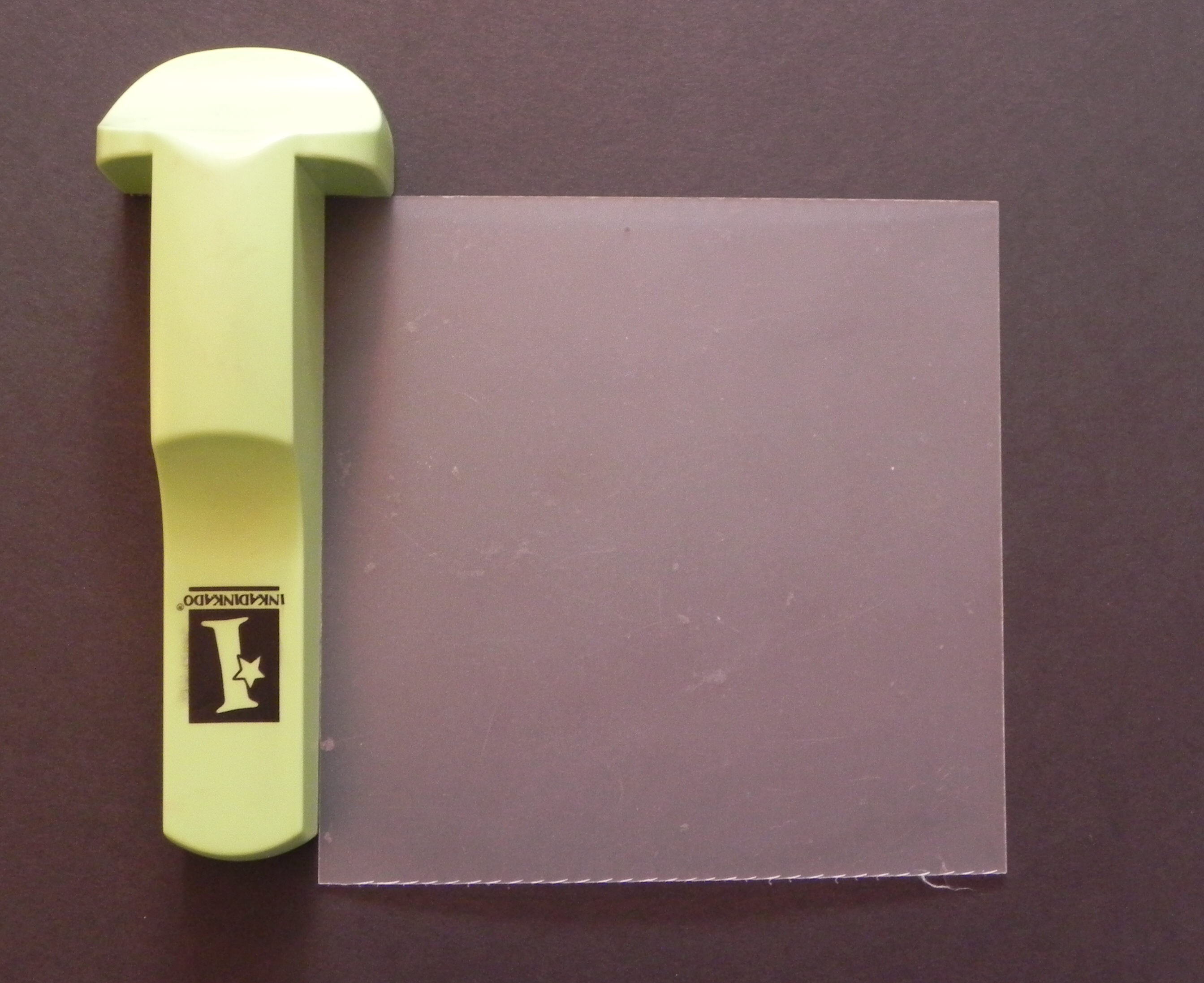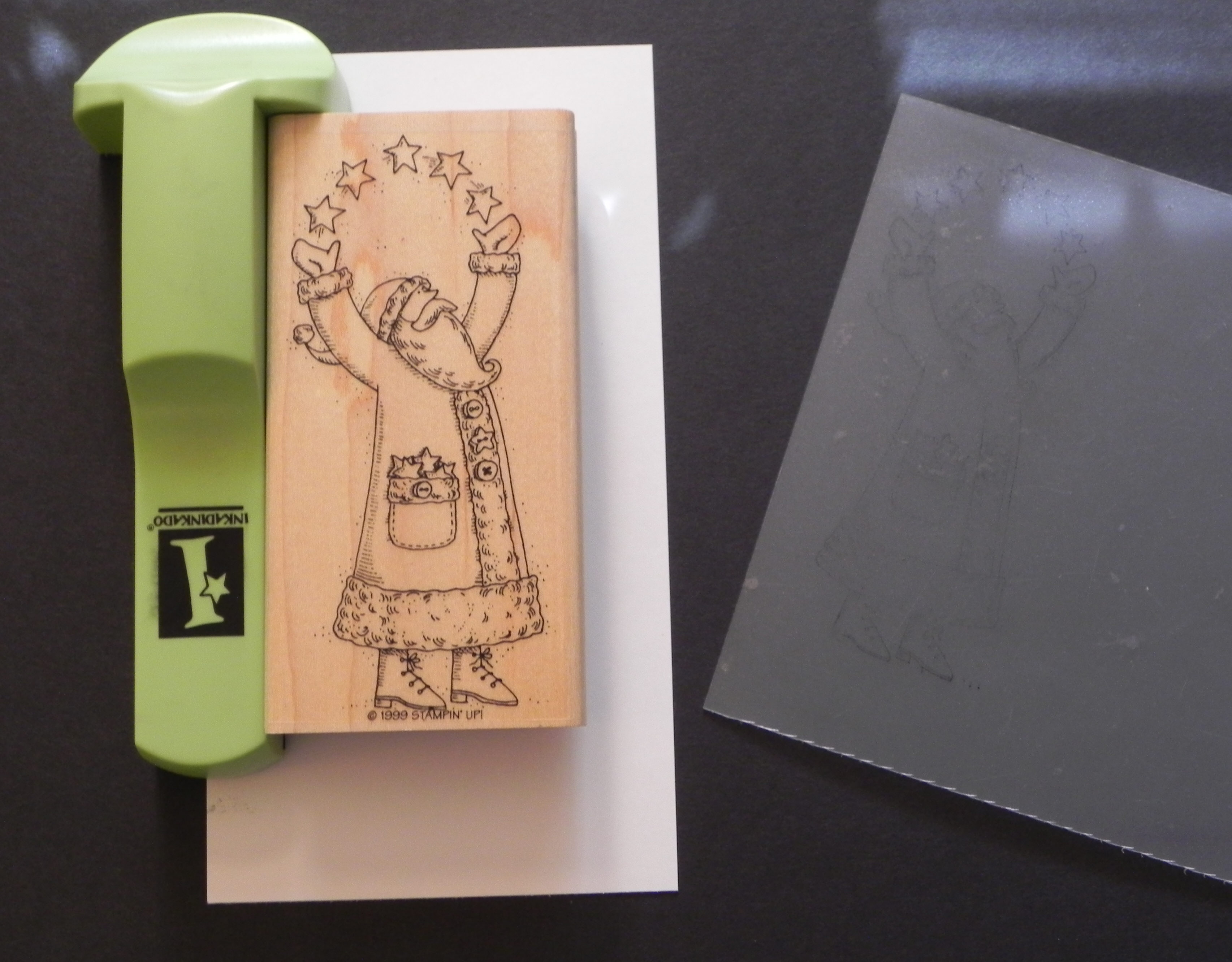 c. Remove the stamp and tool, and you will have a stamped image on your positioner sheet. (Sorry it photographed so light.)