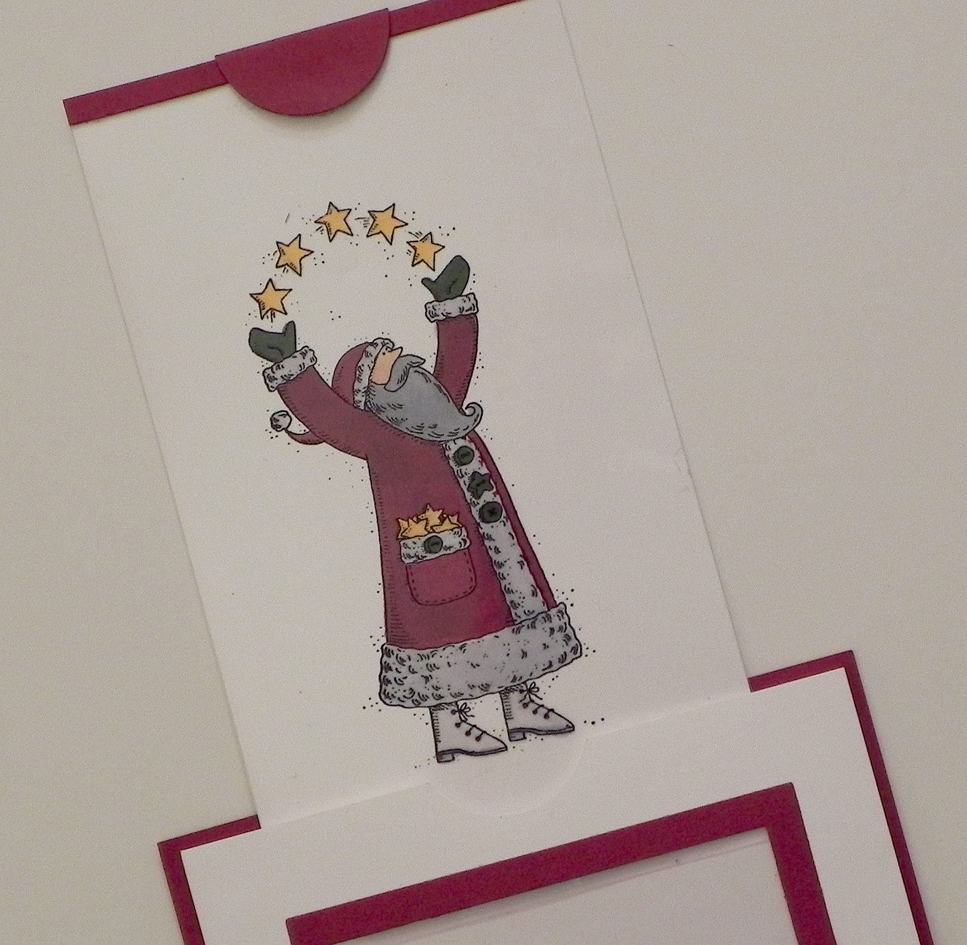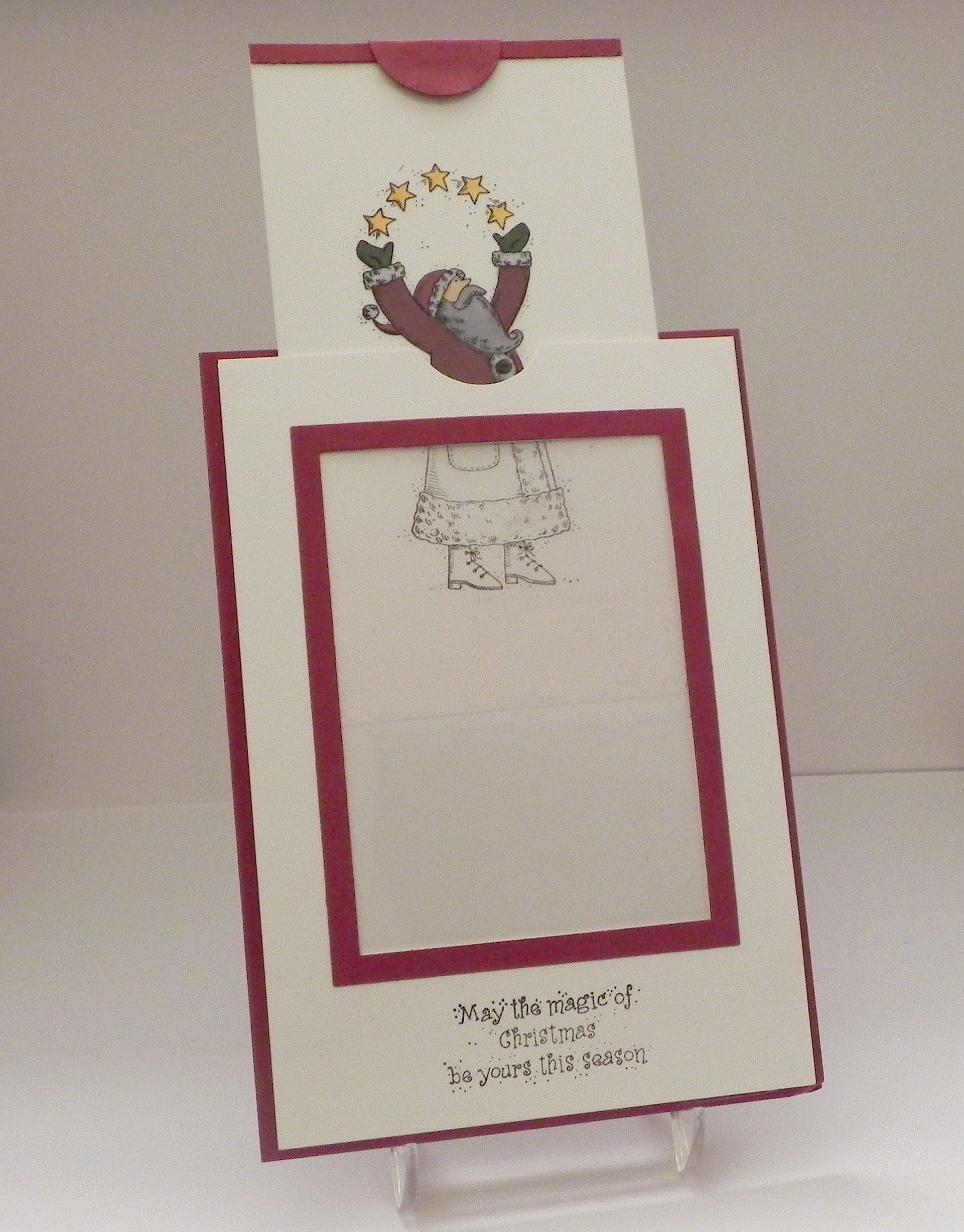 A card posted by David Maynard on StampTv and a You Tube video called “Magic Card With Dawn” inspired me to make this card. (Thank you David and Dawn!)