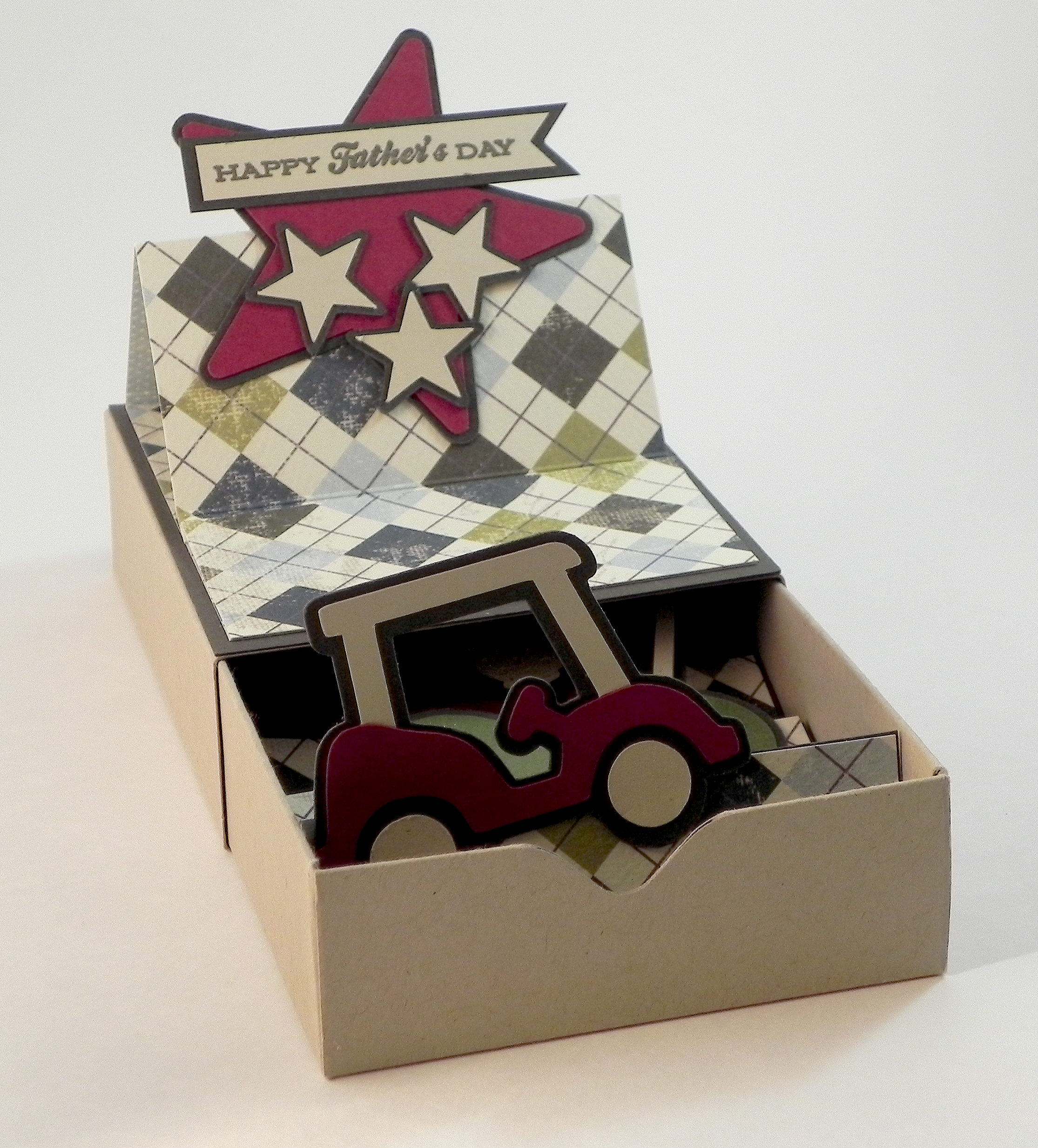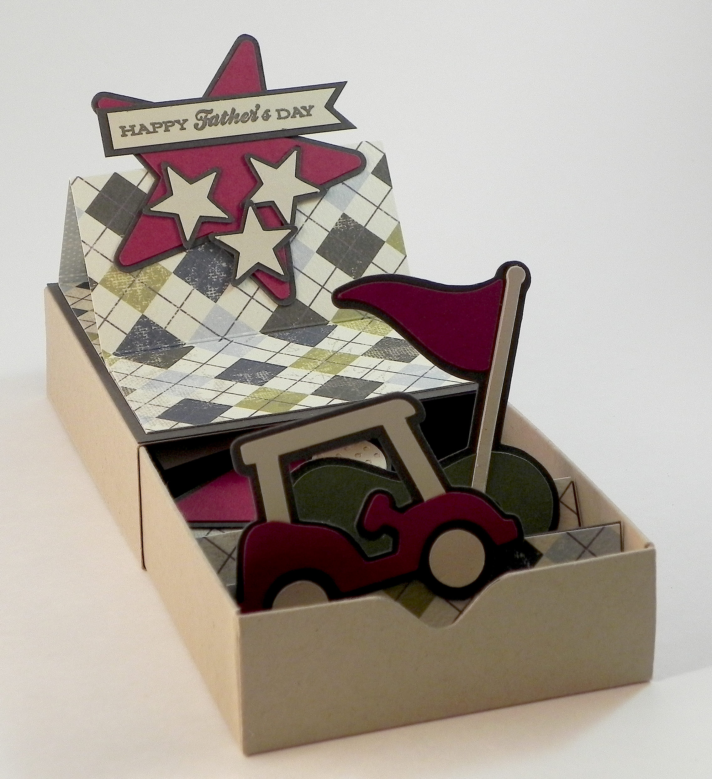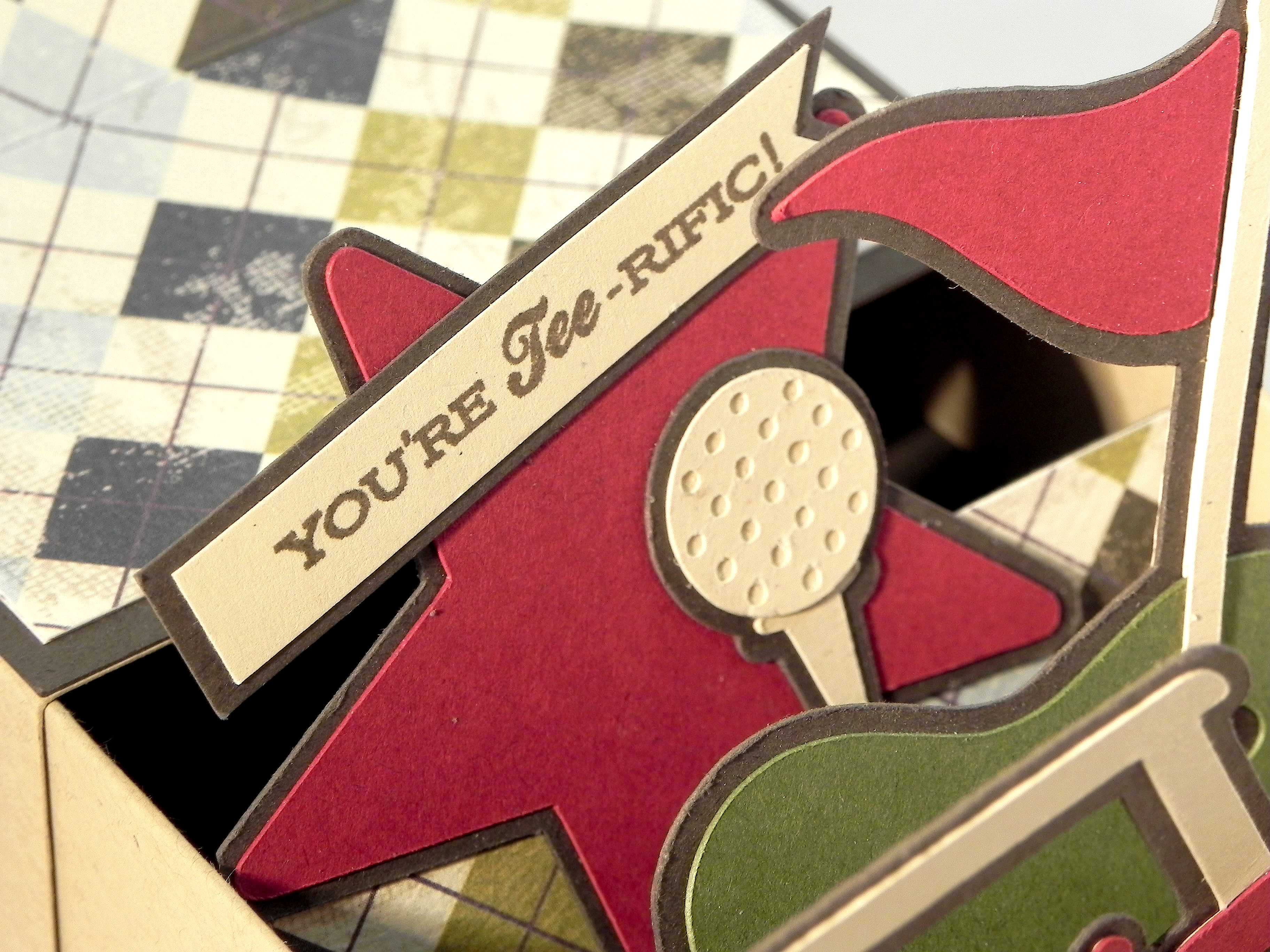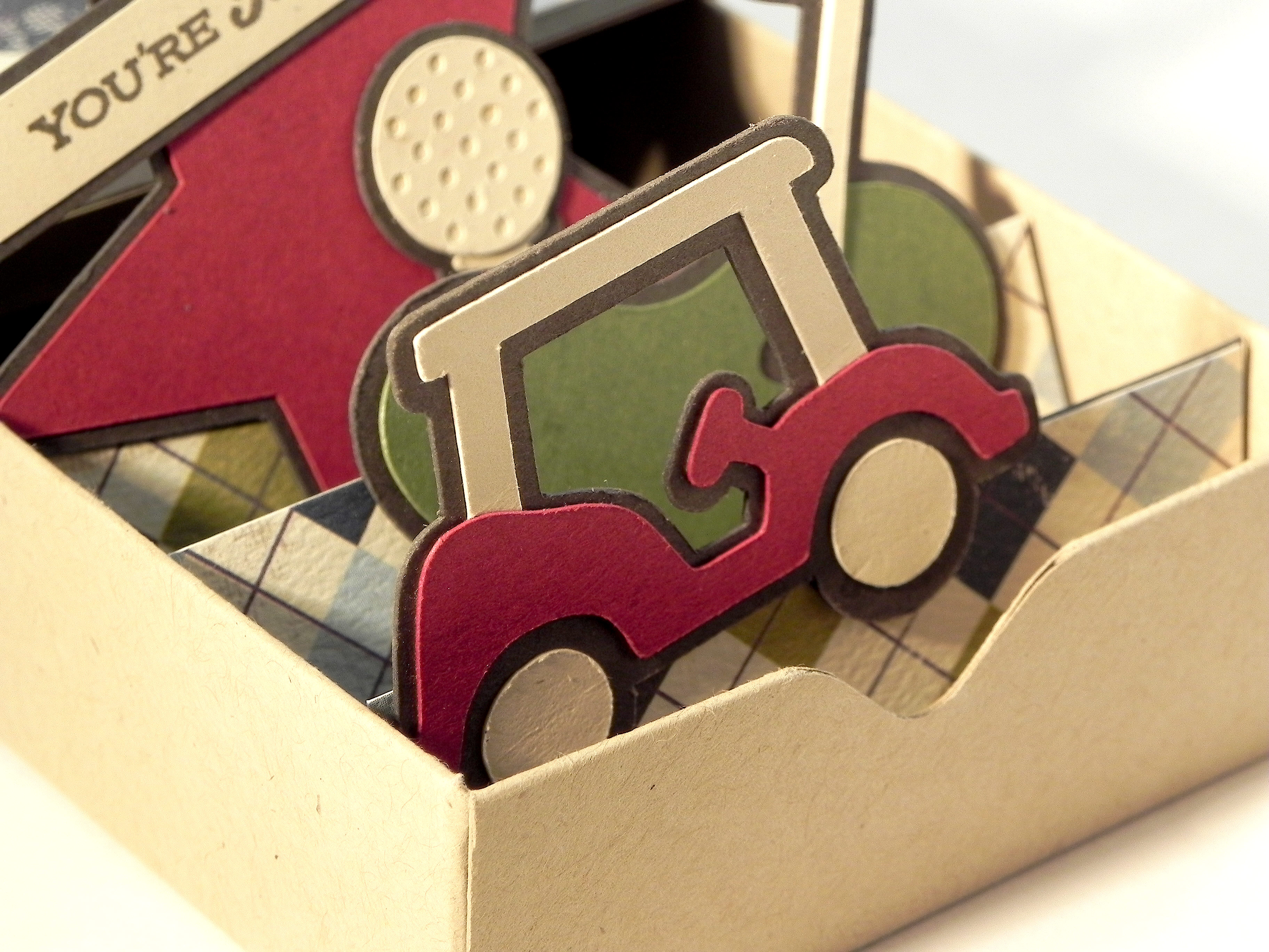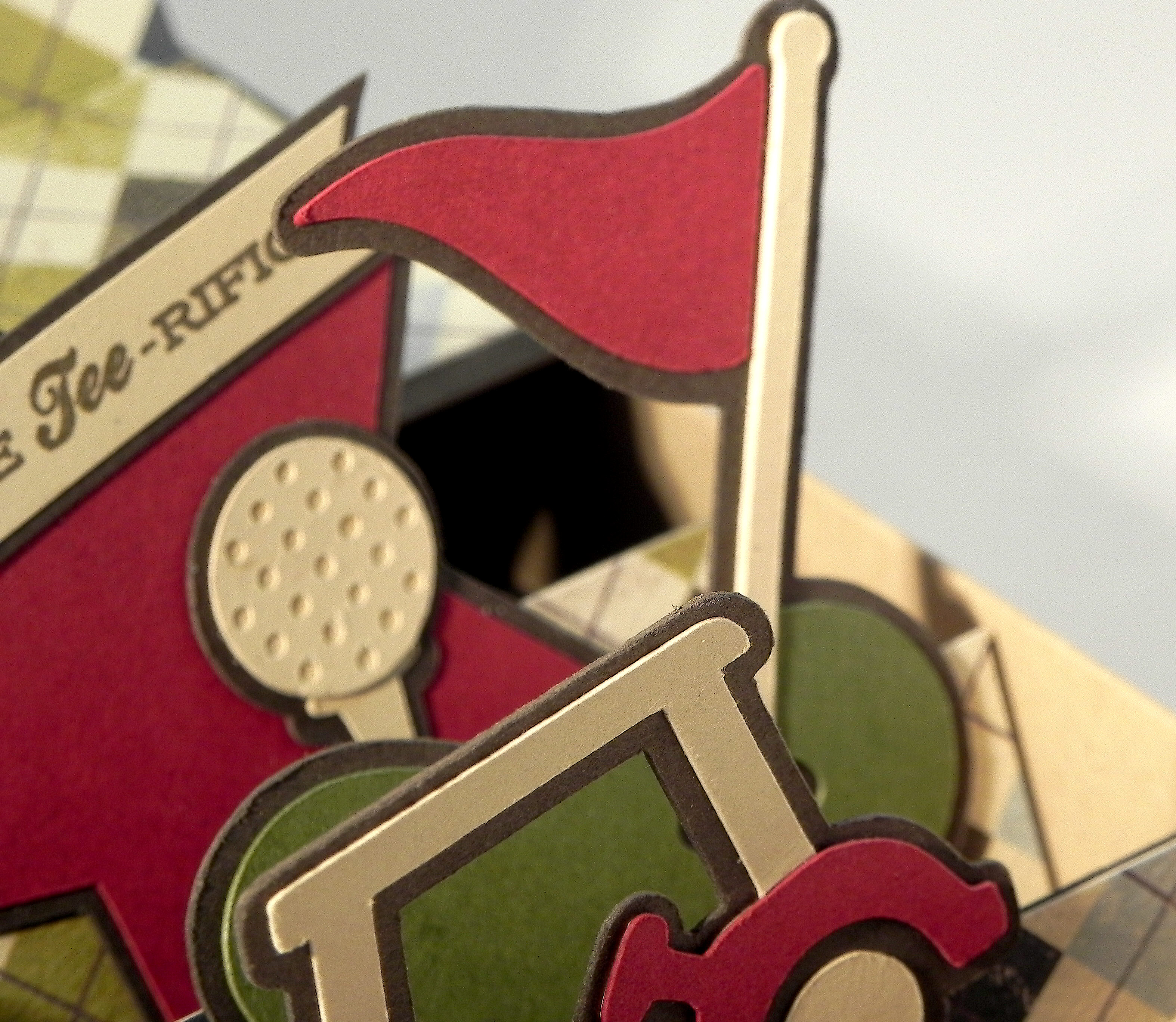 The elements I used to decorate the top and inside panels of my box are adapted from the Silhouette file by Lori Whitlock called Golf Box Card (Design #60656).