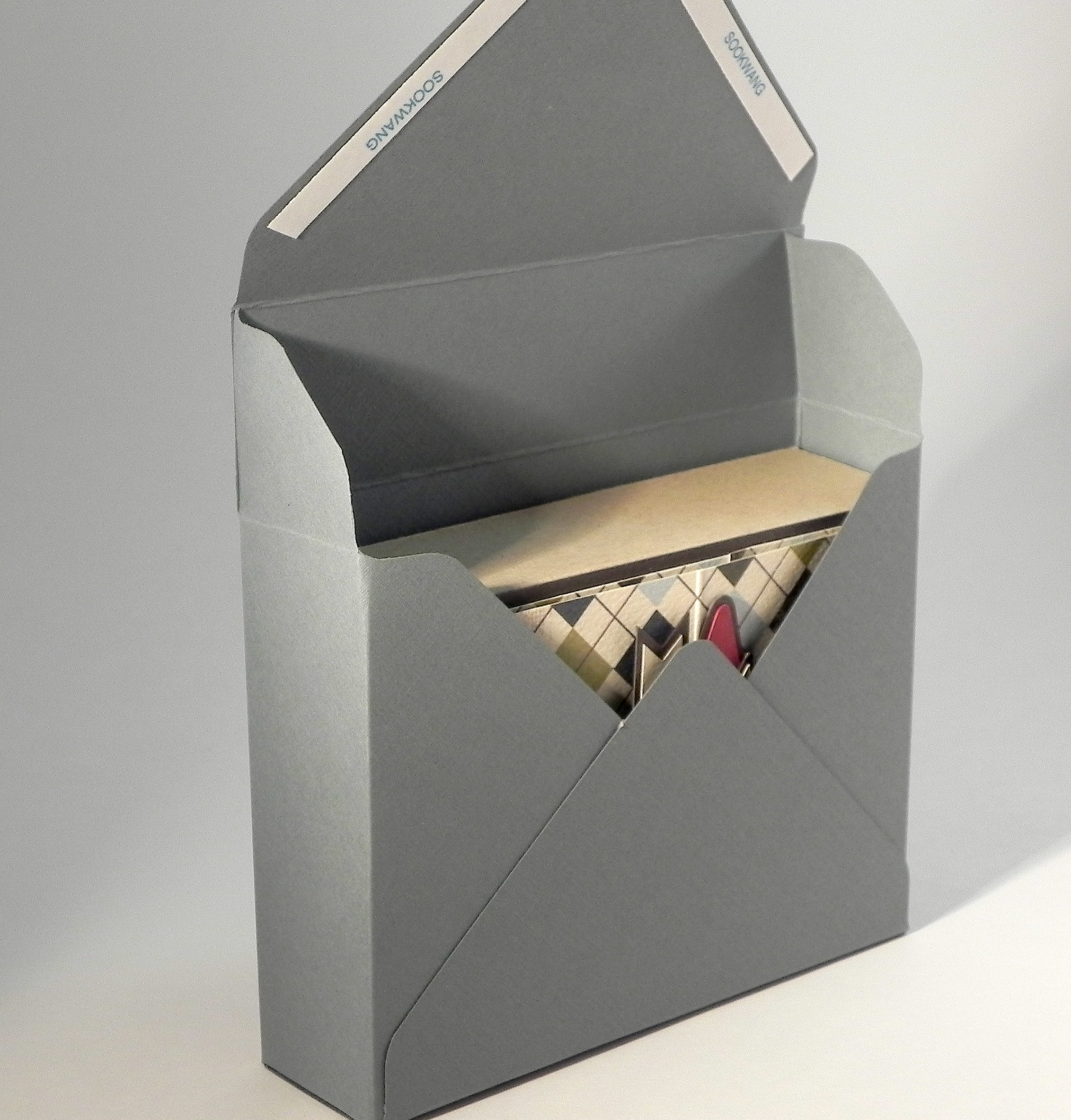 The unique shape of this “card” requires a special envelope! I used the envelope punch board again to create a box-like envelope for my matchbox card.