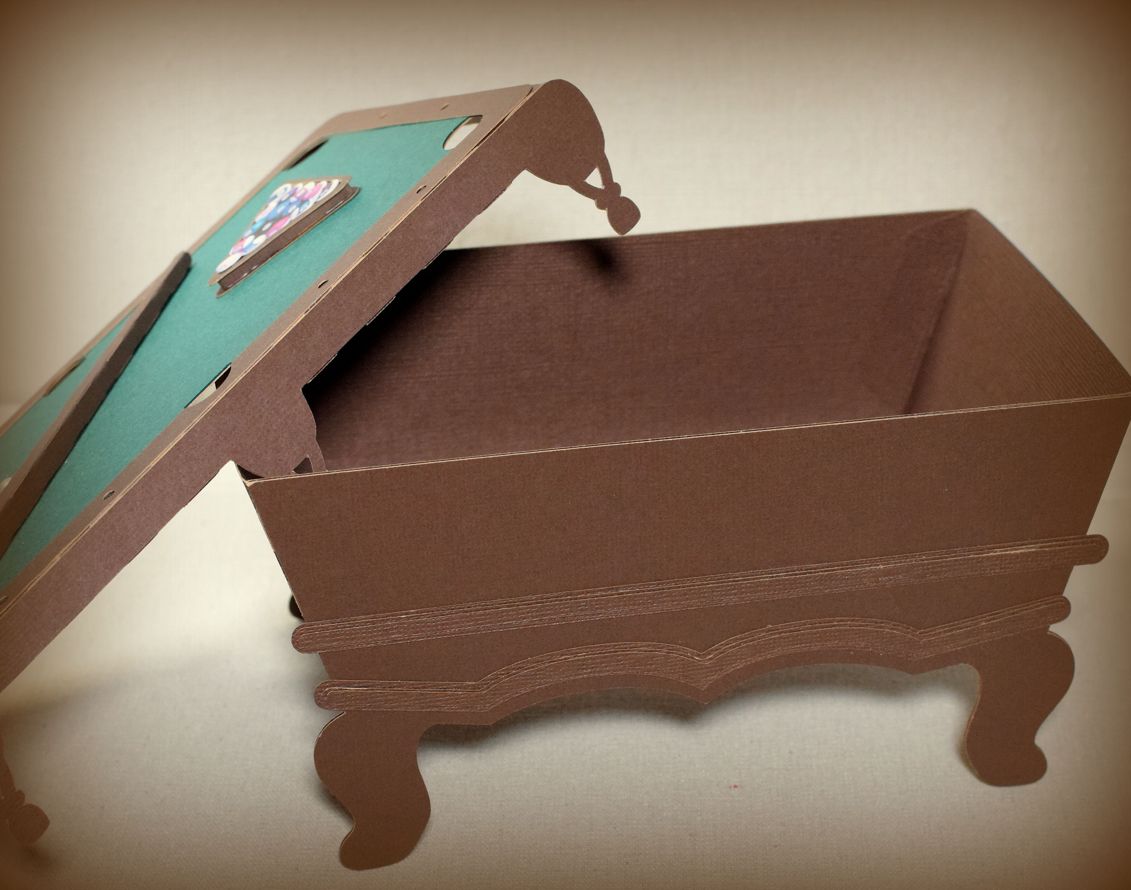 Here’s a fun gift box I made from an svg file from SVGCuts. It is part of a kit called “The Green Room” which includes projects for anyone who loves throwing darts, shooting pool, playing poker or bowling. I cut the pieces with my Silhouette electronic die cutting machine and some card stock. A video tutorial is available to help with the assembly.