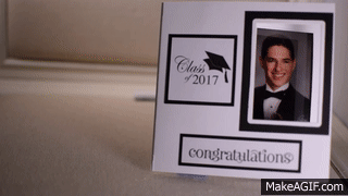 I had seen a tutorial for a Peek-a Boo Card where the image on the front of the card appears to transform into a second image as the card is opened.  I thought these would make great graduation cards for my triplets who just graduated from high school.