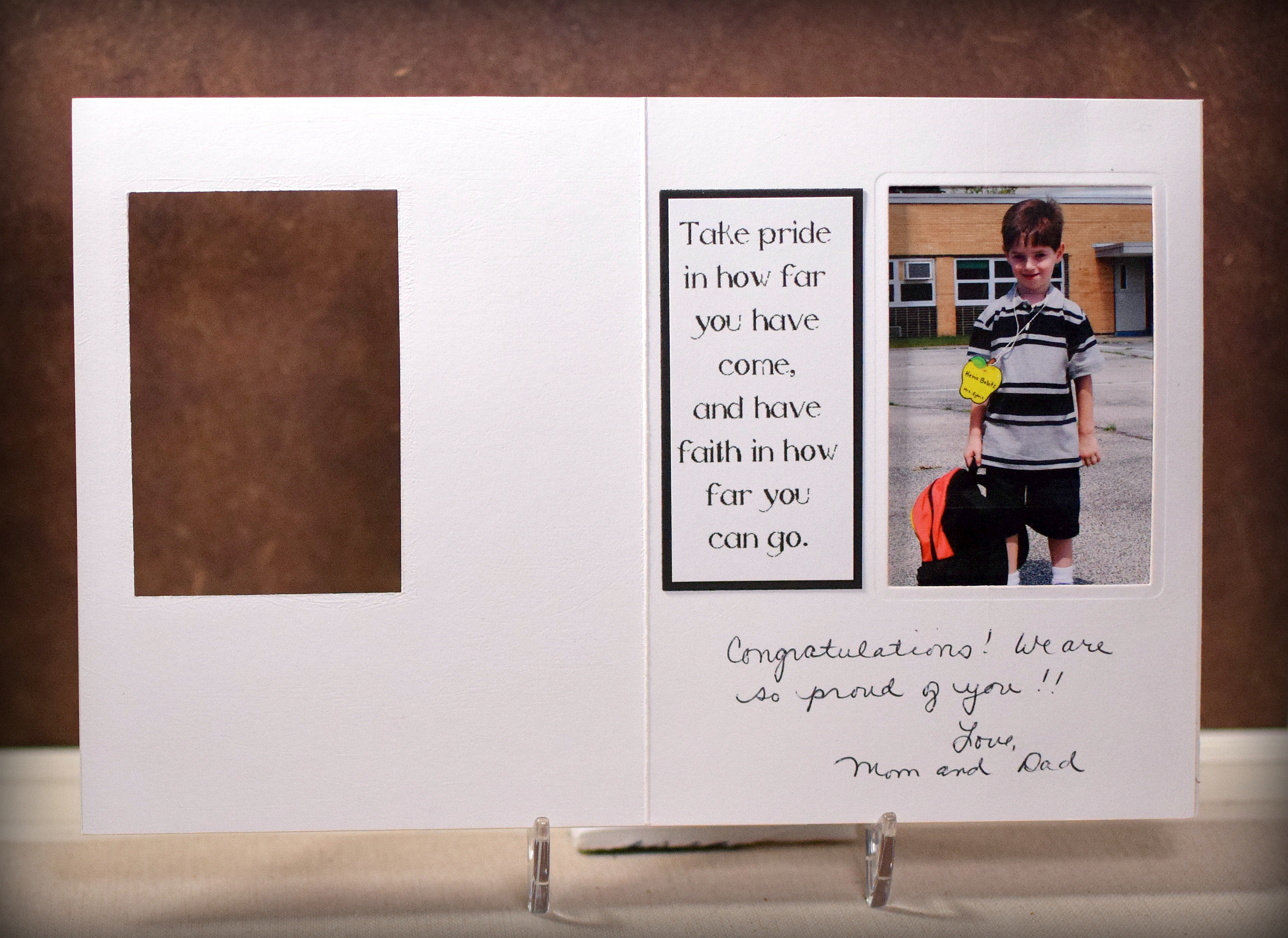 When the cards are closed, you can see their senior portraits , and as the cards are opened, their senior portraits “transform” into pictures from their first day of kindergarten.