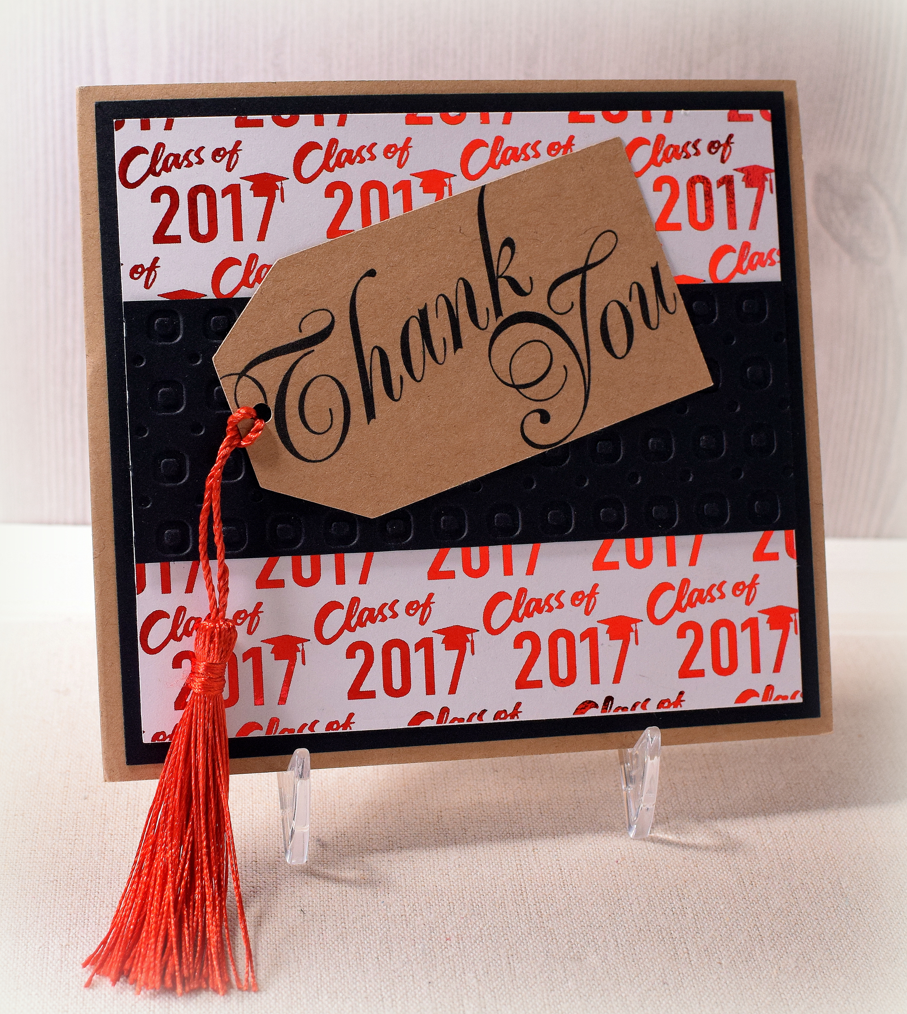 I purchased the tassels (ready-made) on amazon. The black panel across the middle was debossed with a Darice Circle Background embossing folder.