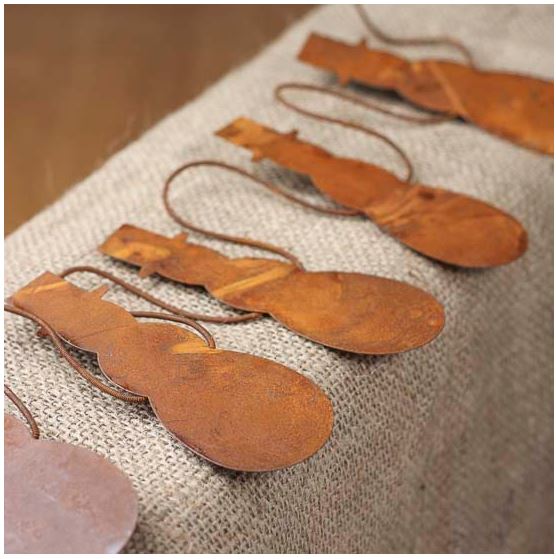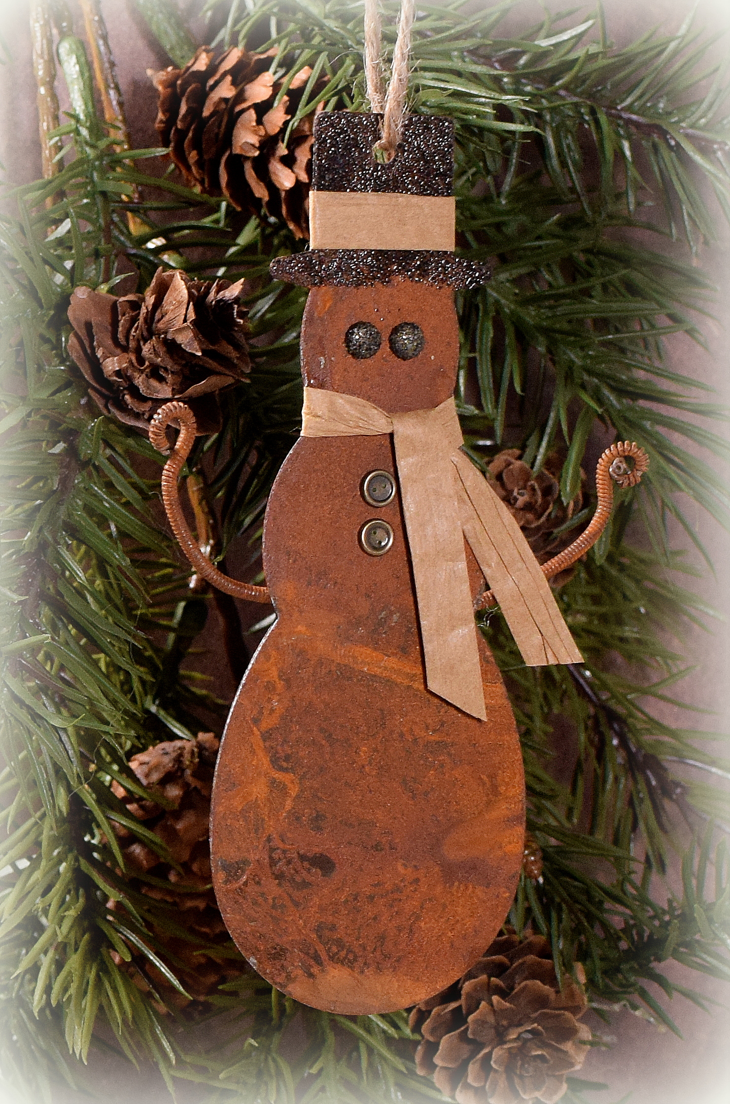 To create the ornament, I started with “Primitive Rusty Tin Snowman Garland” that I purchased online from Factory Direct Craft.