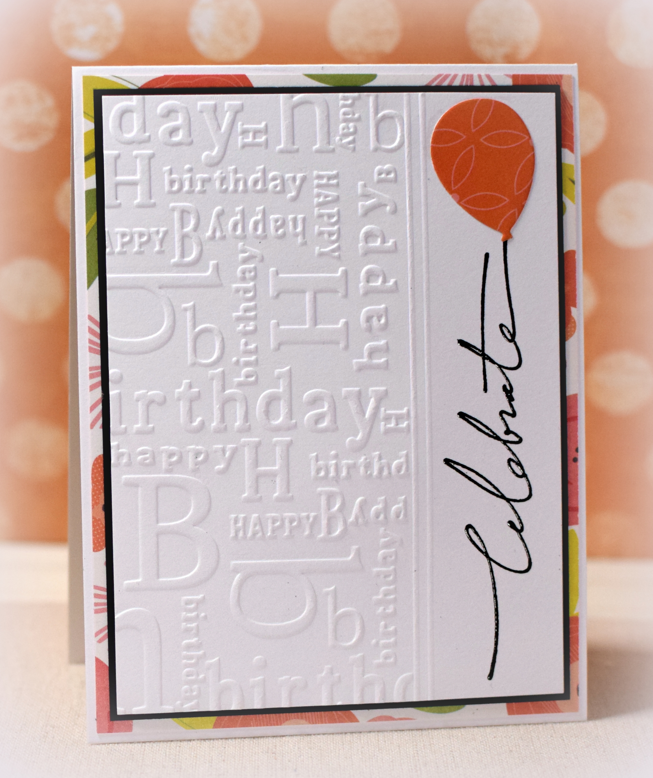 This CAS birthday card features some partial embossing, a scripty greeting stamp, and a balloon die cut for a pop of color.