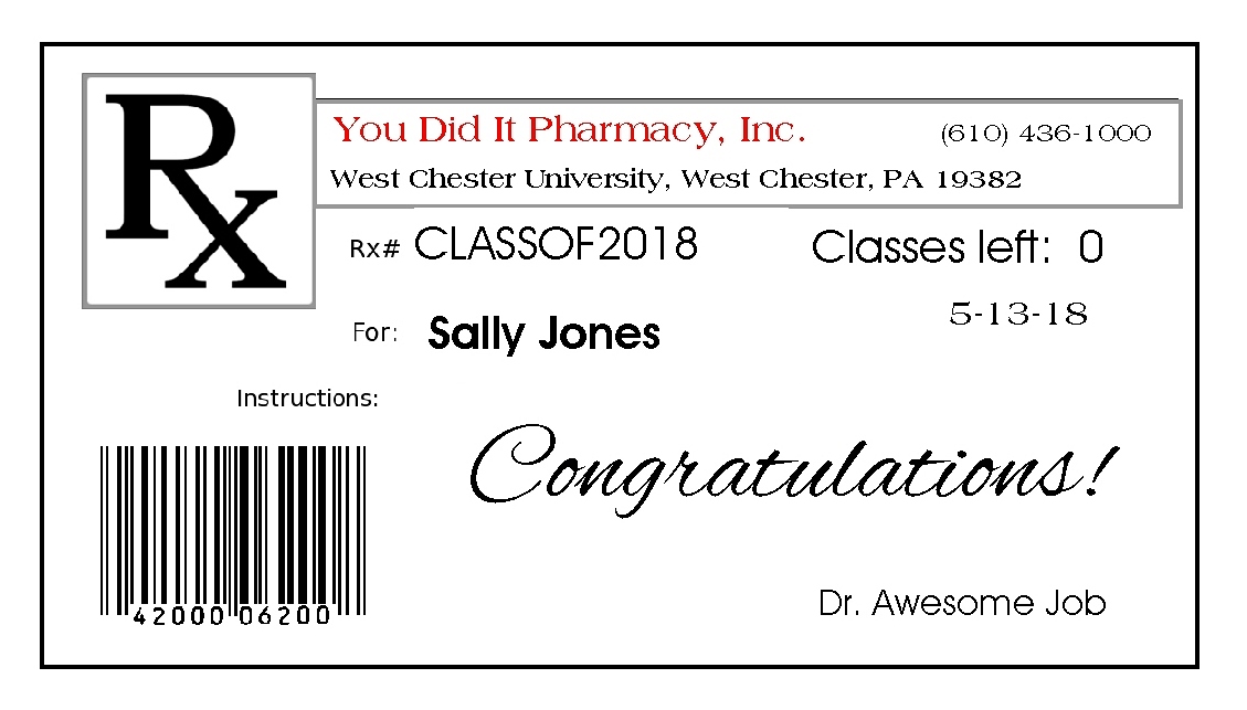I was asked to make gift boxes for several nursing students who will be graduating in a few weeks. I saw this svg file called “Nurse Gift Box” from Dreaming Tree and thought it was perfect!. The file includes a caduceus for the front of the “prescription bottle” part of the box (sample below), but I created the fake label for each box instead that could be customized for each graduate who is to receive the gift. (It wasn’t obvious to me at first that the box was supposed to be a prescription bottle, and the label seemed to make it clearer. I also thought it made it more graduation-y!)