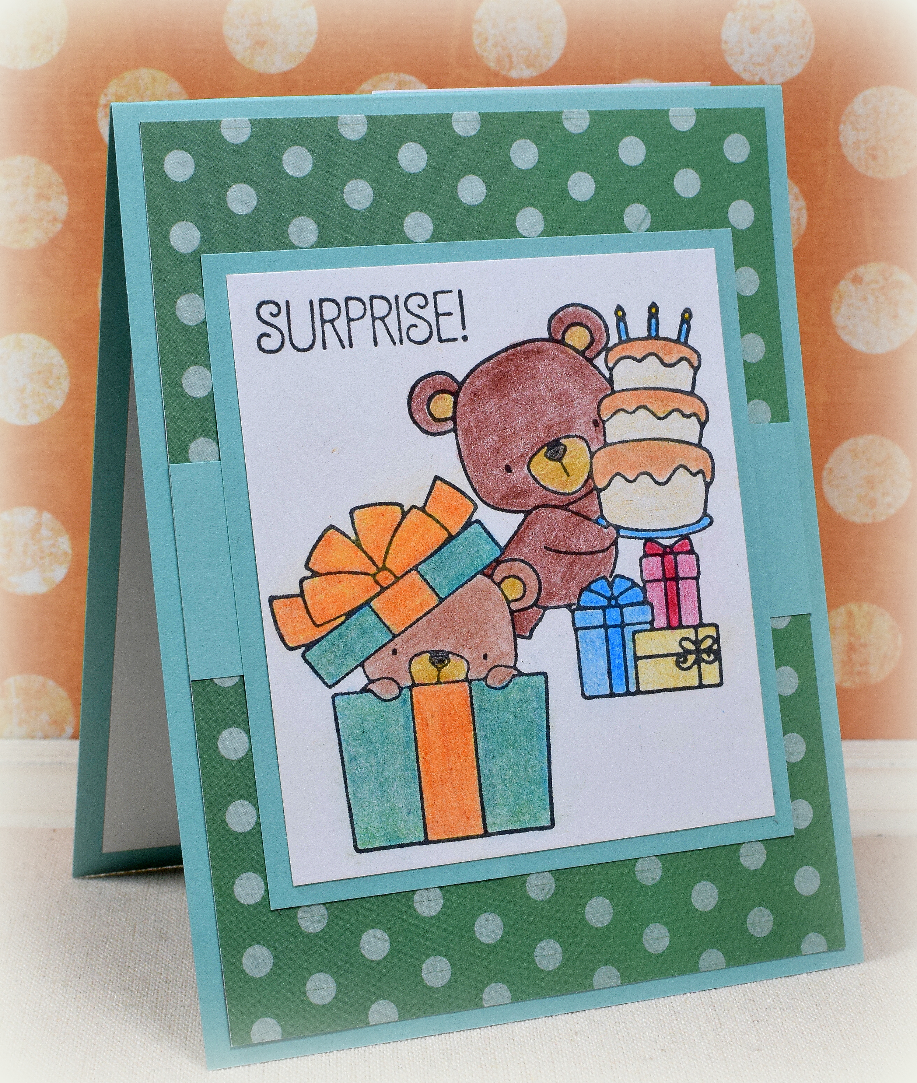 The “Beary Special Birthday” stamp set from My Favorite Things has a bunch of adorable images that can be layered (with masking) to create cute birthday scenes.
