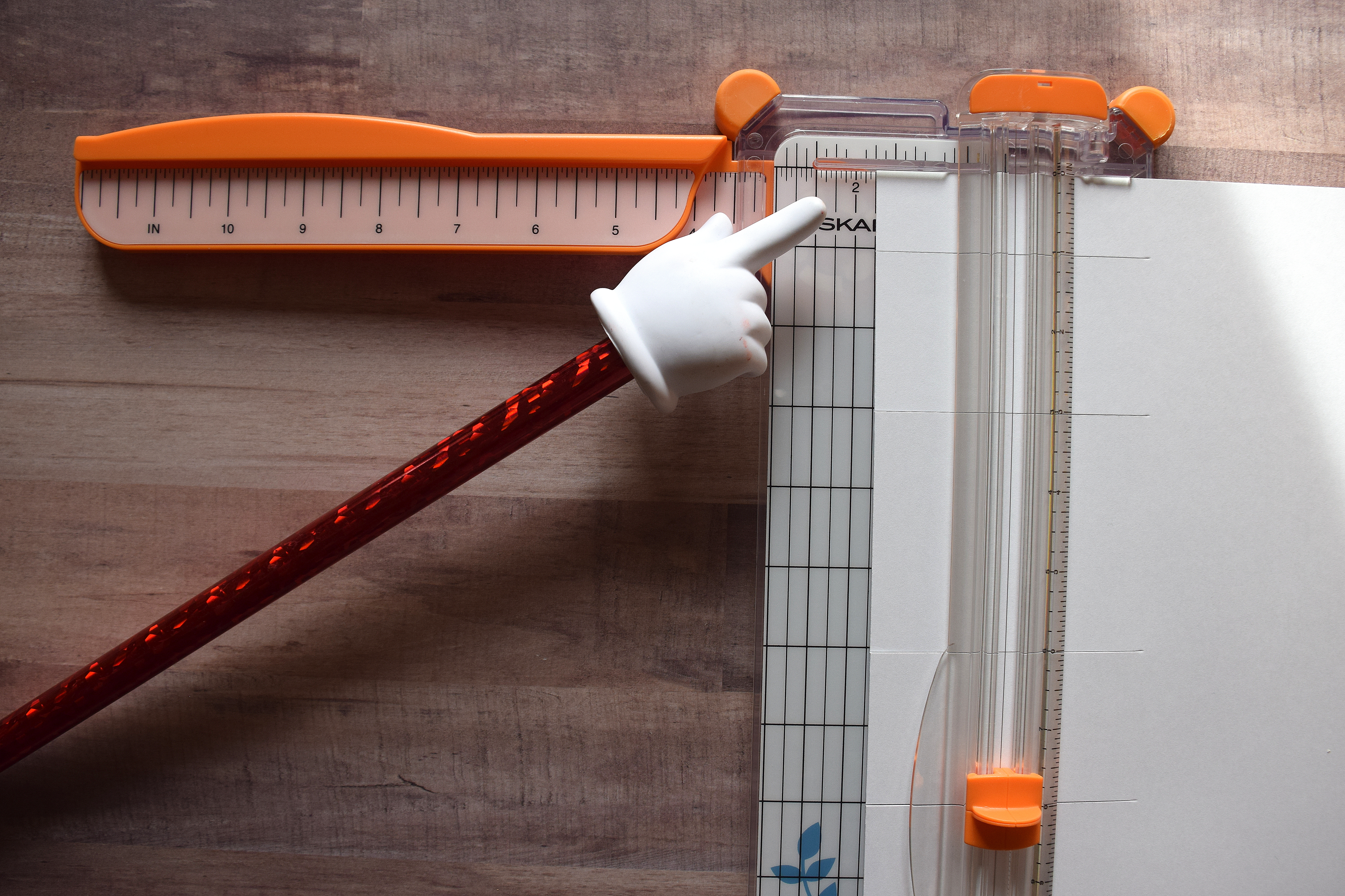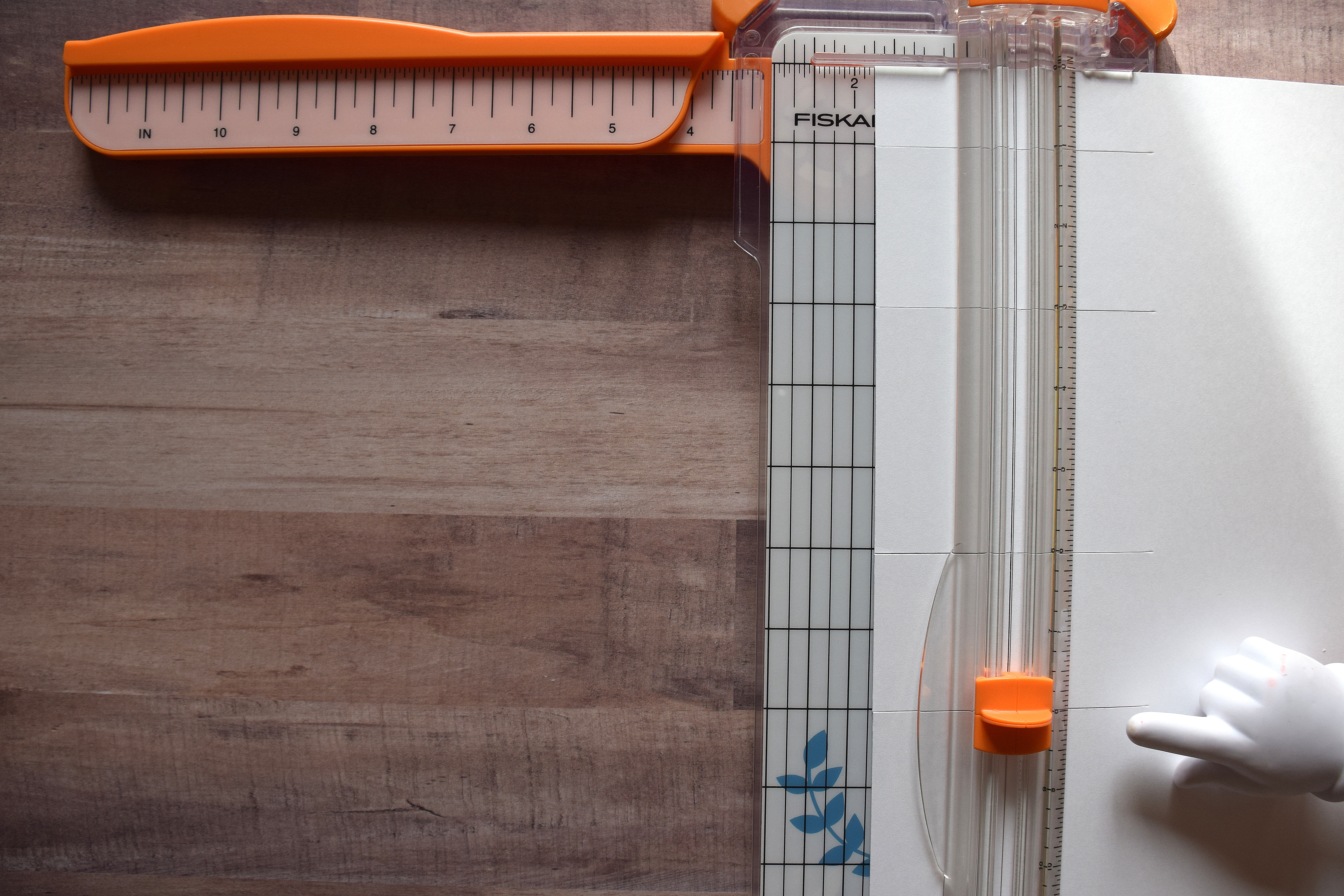 5. Slide paper to left, and line up left corner/edge at 8 inches.