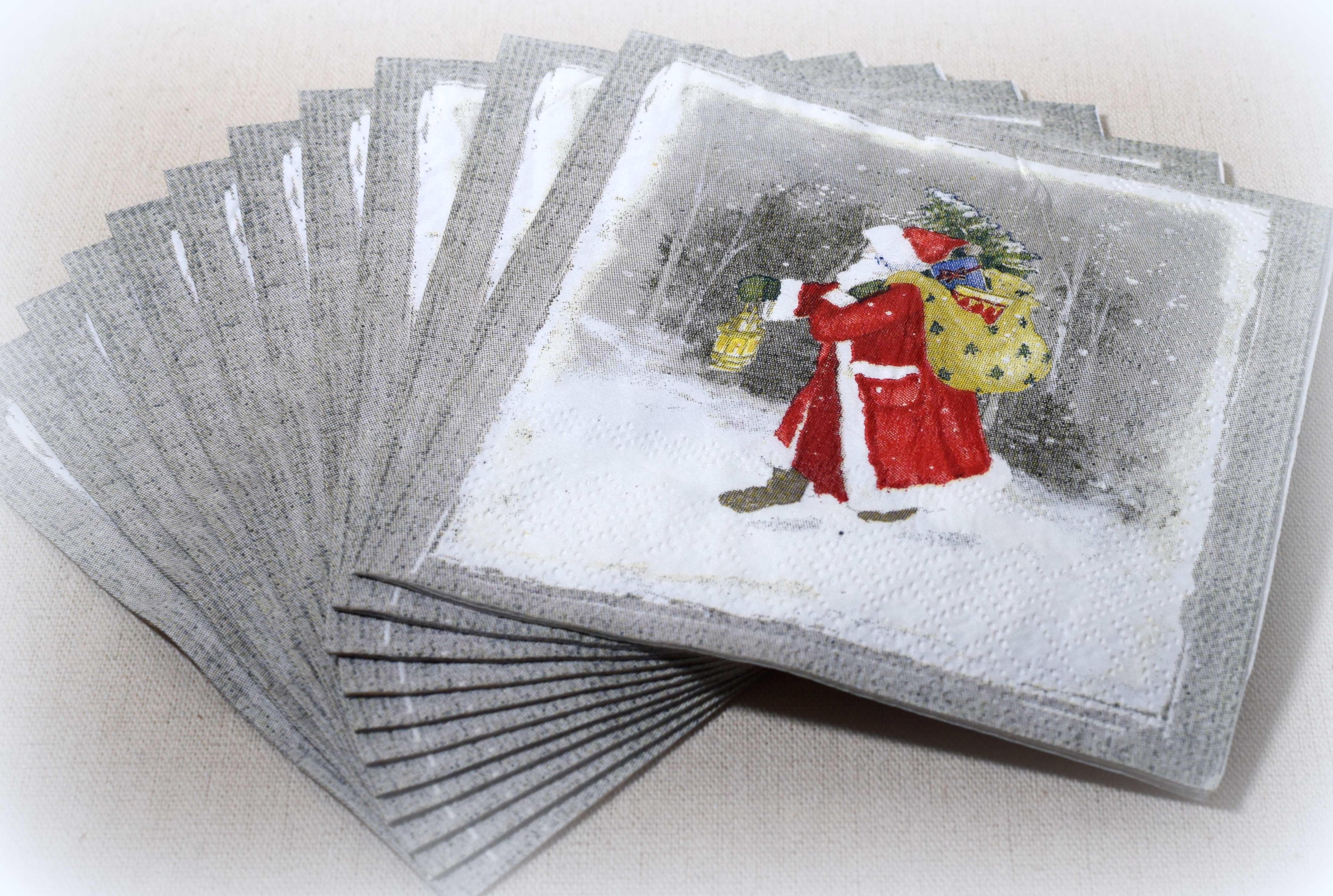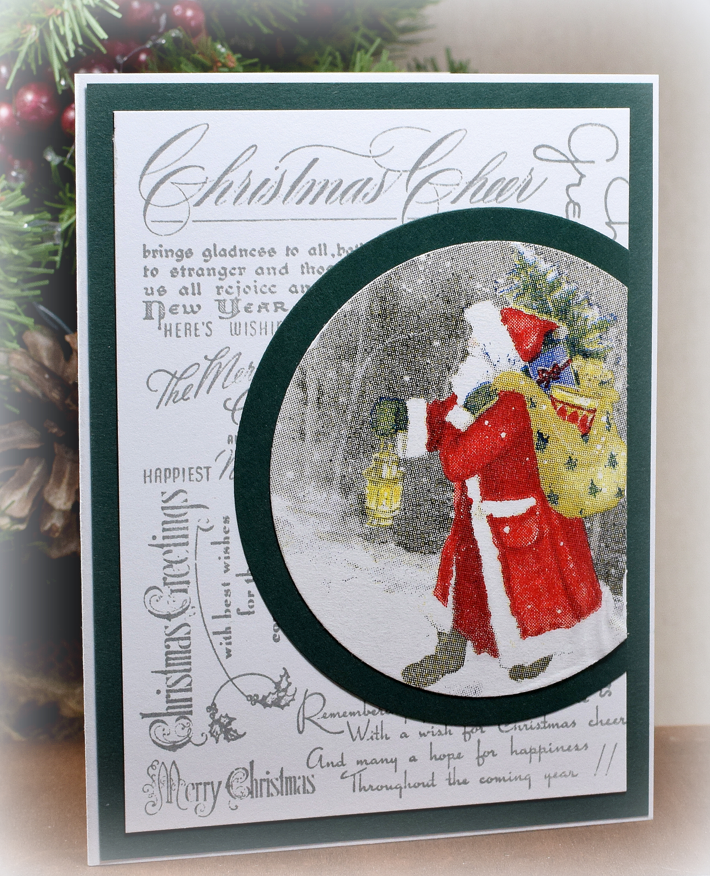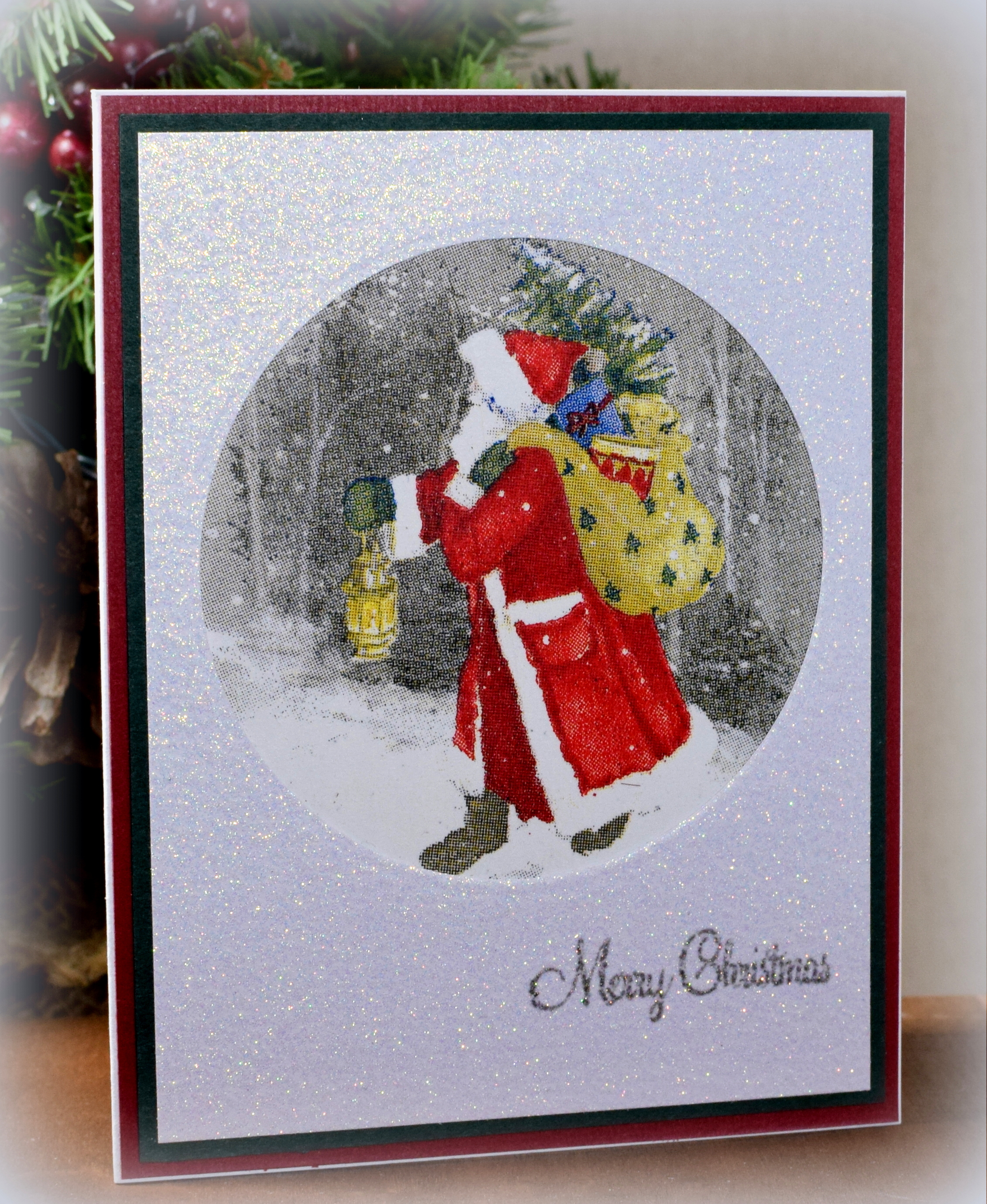 This beautiful Santa image came from a cocktail napkin (by Kathryn White; Evergreen Enterprises) that I purchased at Home Goods.