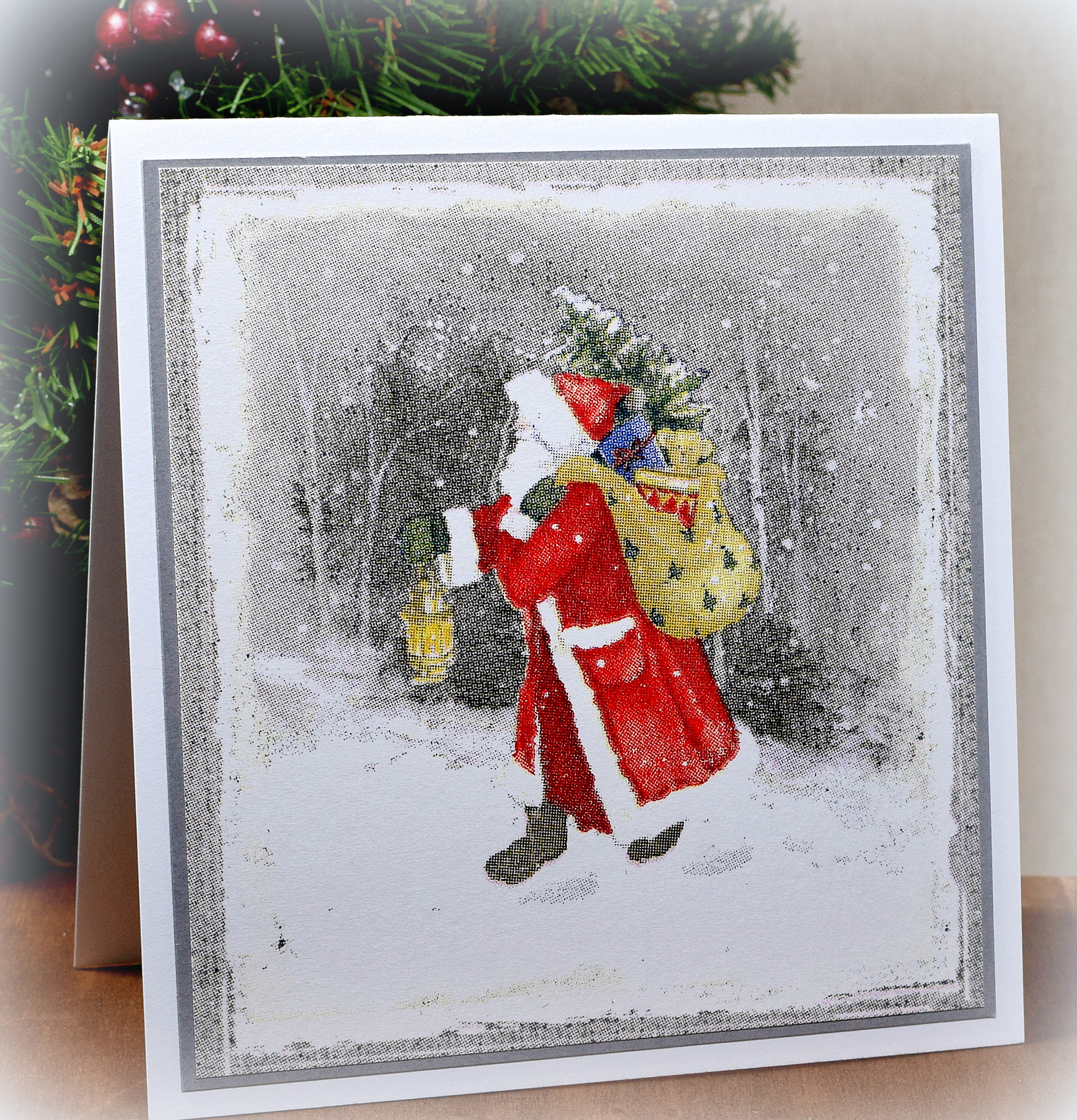 3 thoughts on “Santa in Snow Napkin Card (- a few variations)