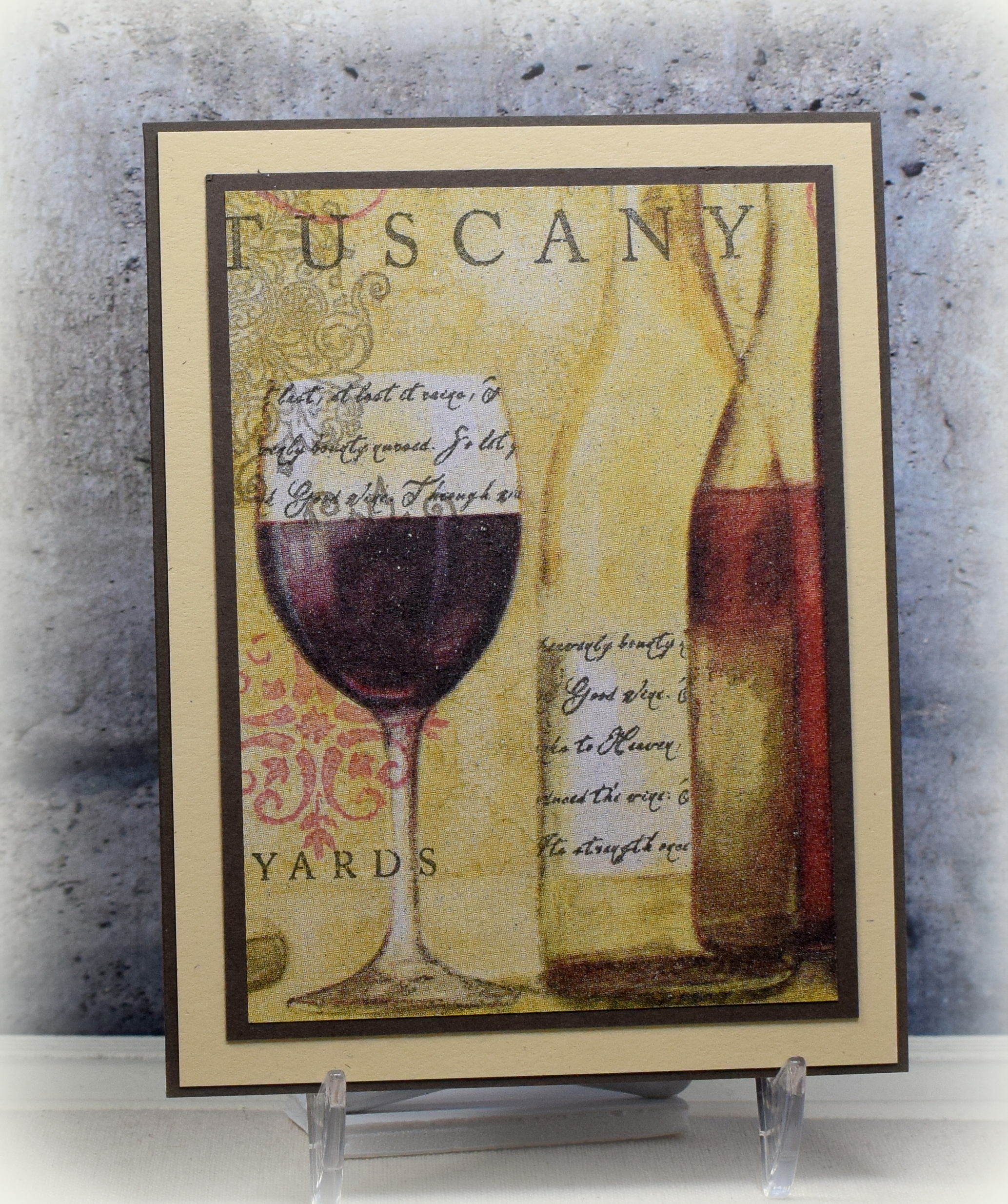 Wow a very creative use of another item like this attractive napkin. A lustrous color theme that would make a terrific card to be received by a wine enthusiast or anyone who appreciates a unique and lovely card for a change.