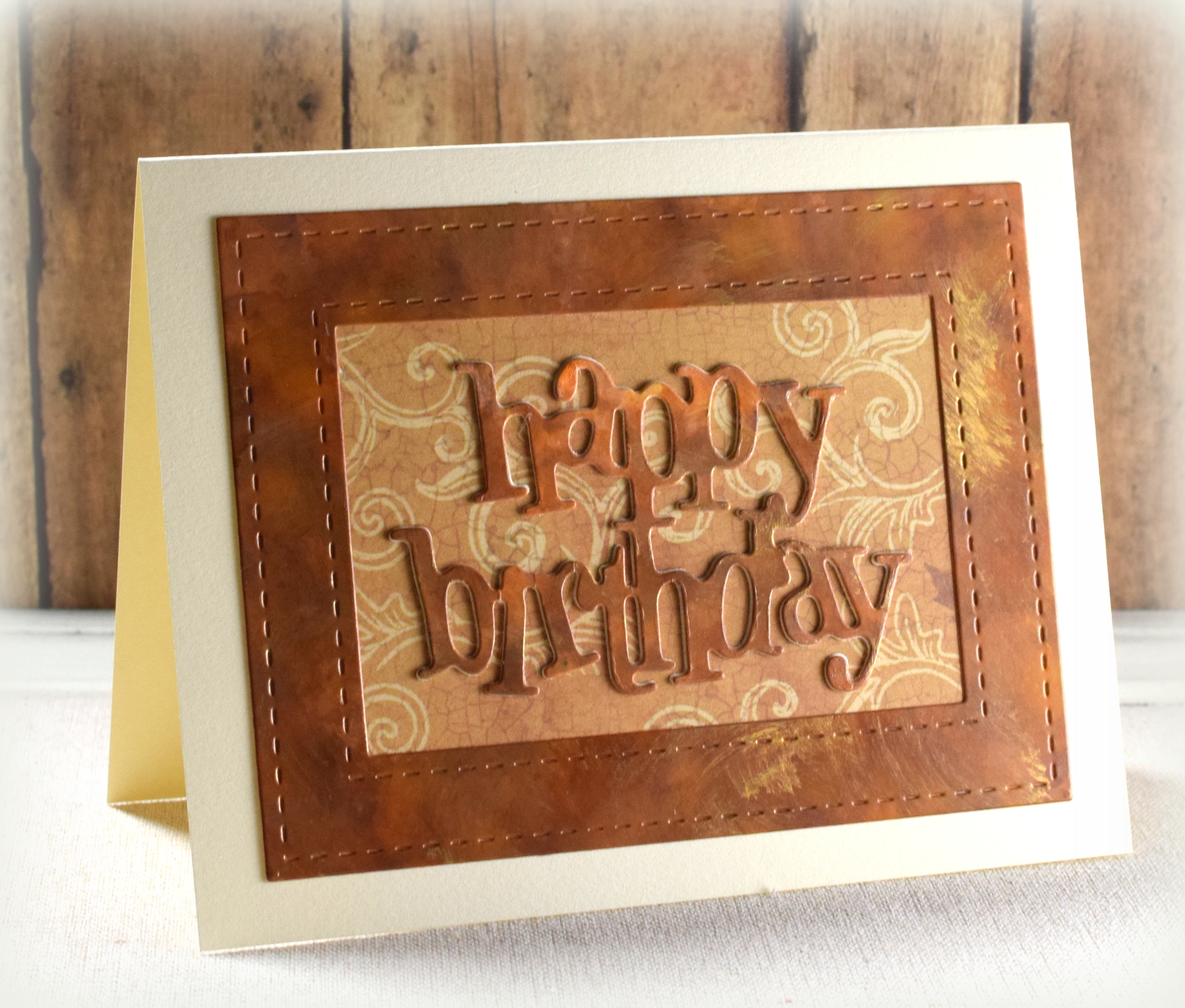 The ink really goes a long way once you get your foam applicator loaded up, so I just kept going and was able to make several panels at that time. (That’s why all these cards are similar in color.) I used Ranger Glossy Card Stock along with Ranger alcohol inks (Caramel, Latte, Ginger, Currant, Sunshine Yellow, Sunset Orange, and Gold Mixative) and Alcohol Ink Blending Solution.