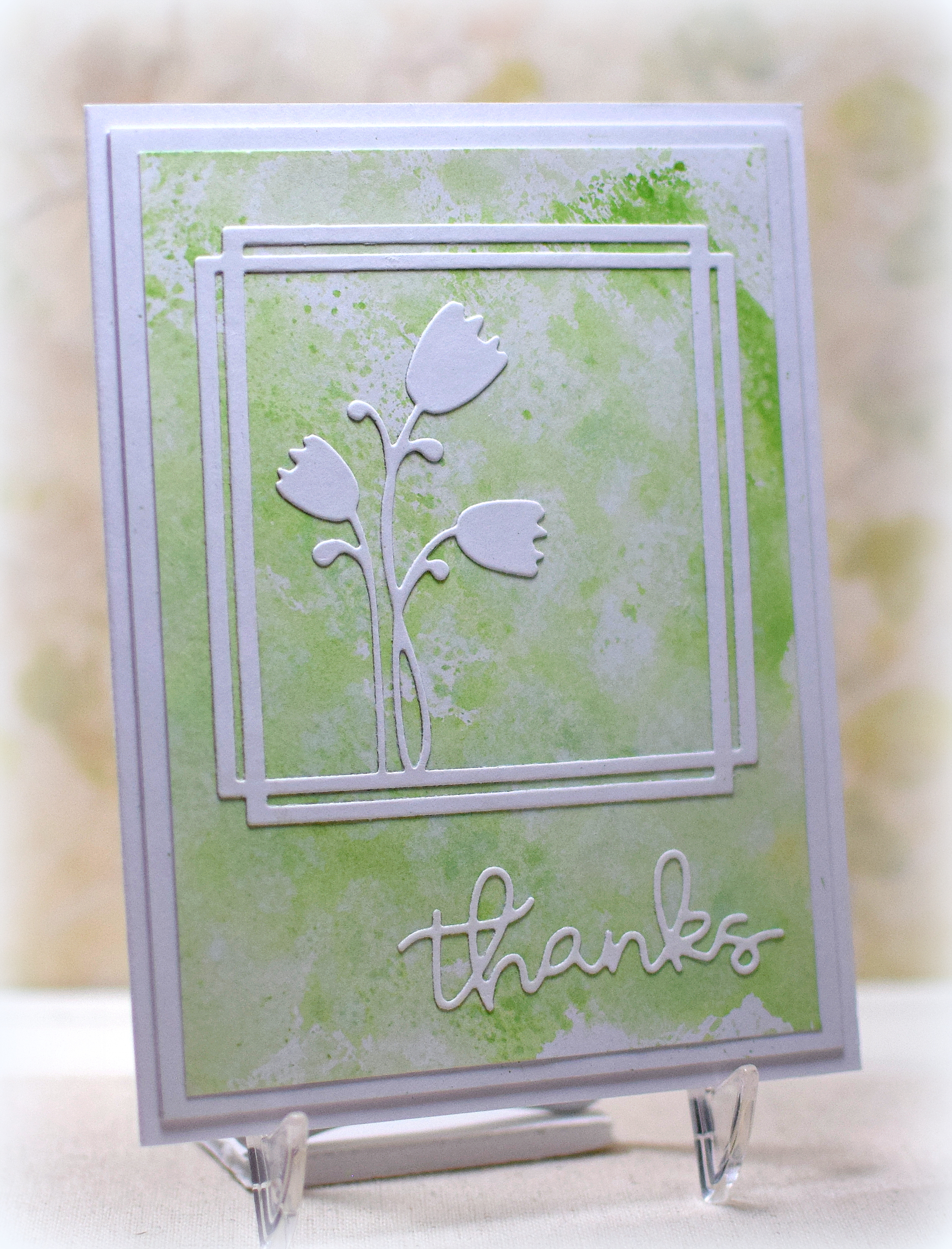 (The “thanks” die was unbranded, but I’ve since found and purchased the “Gallery Frame 2” die set from Hello Bluebird which contains this “thanks” die, but bigger.)