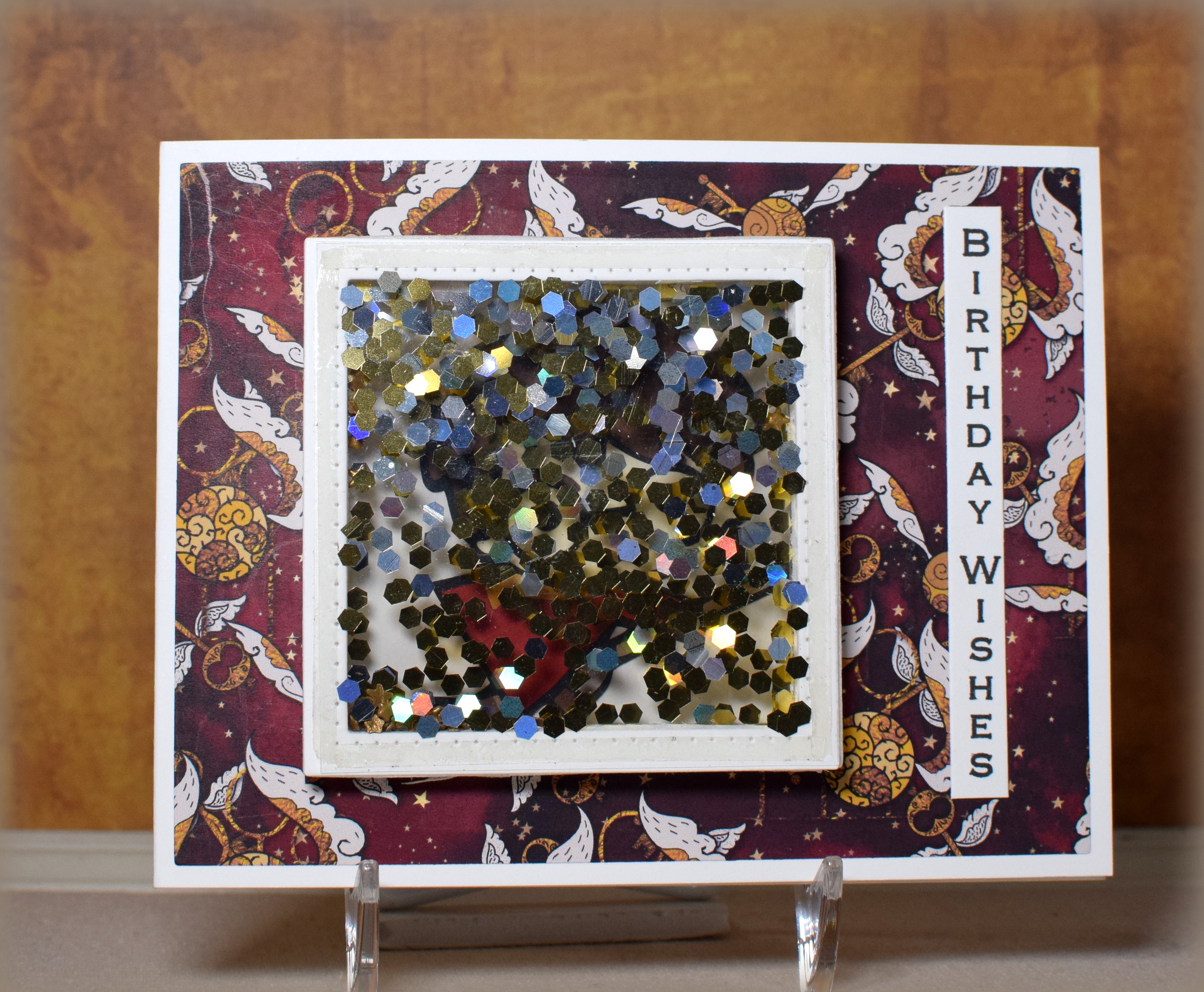 (The shaker panel in the photo is unfinished; I did not adhere the top frame to cover the tape since I ended up not keeping it on the card.)