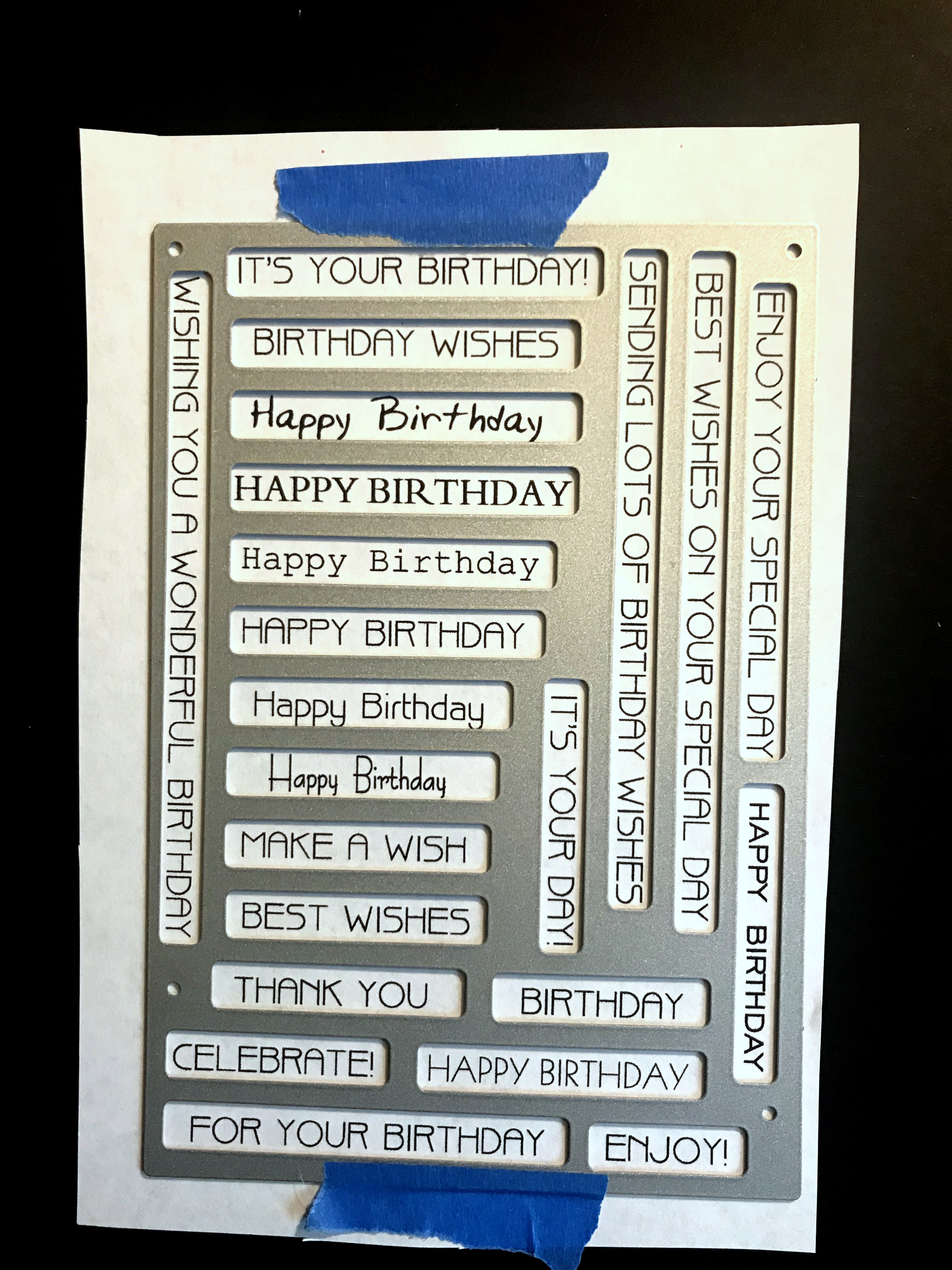You can also use this die to cut a single sentiment by stamping or typing a greeting on a scrap and then finding the one opening/portion of the die that fits.