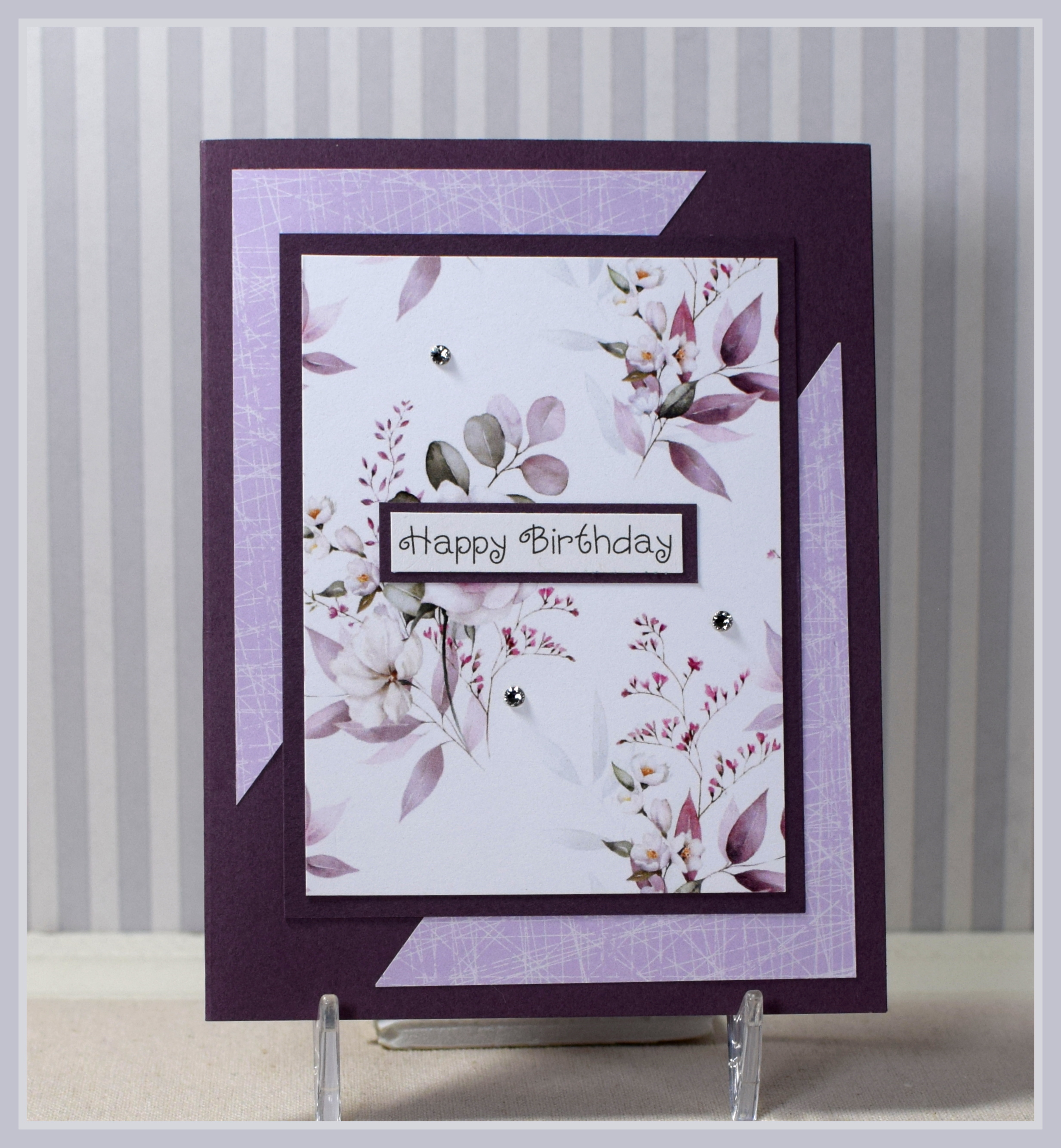 The greeting was computer generated (CK Curly font), and a few 3mm crystals were added for a hint of sparkle.