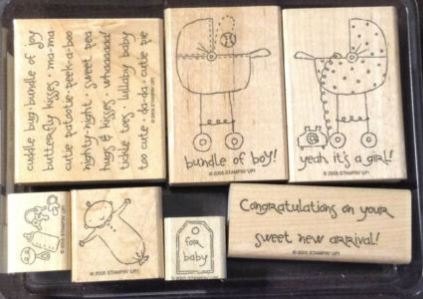 This cute baby image is a cling stamp from a set called “Baby” (#227909) by Recollections. (I purchased this set at Michaels a while ago and can’t seem to find it in the store or online anymore.)