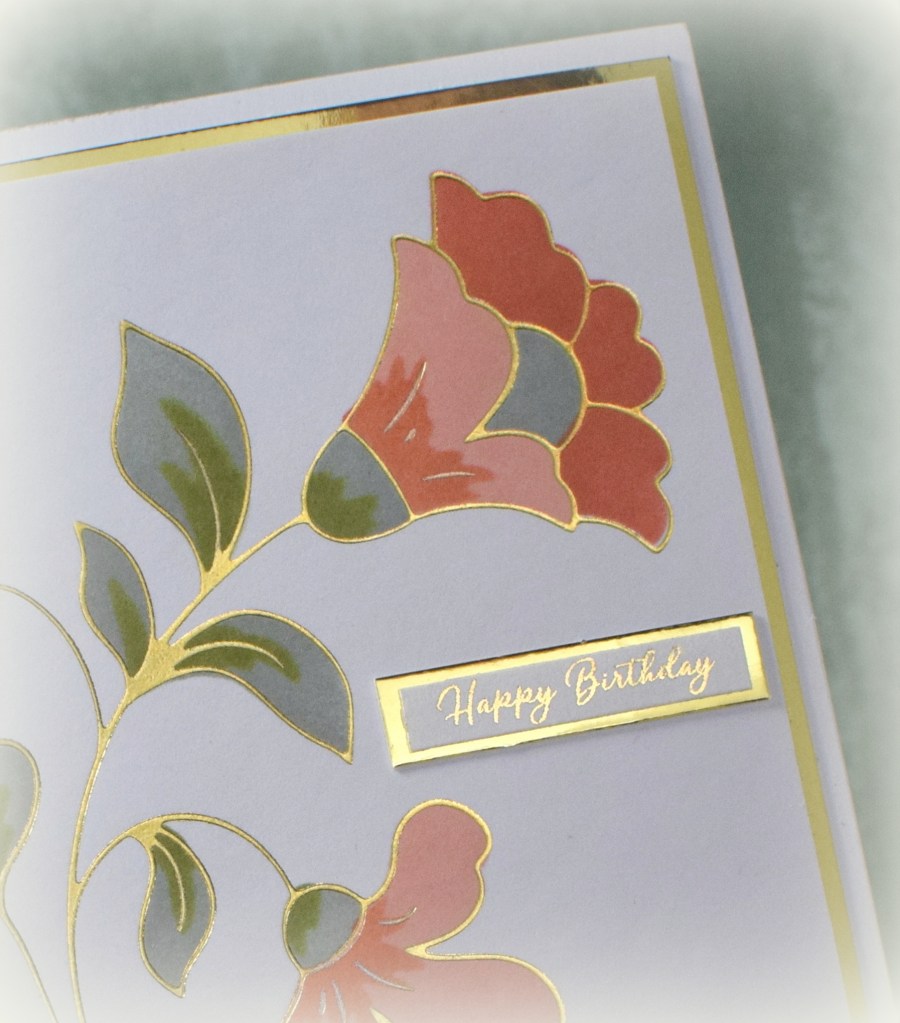It’s SO hard to photograph a foiled card as it’s hard to get the light to hit it just right! Here’s a photo of the card with less direct light hitting it…
