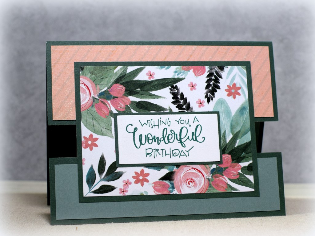 Metallic Gold card stock was used for the mats, and the inside sentiment stamp was called “Happy Happy Birthday” by dandelion designs.