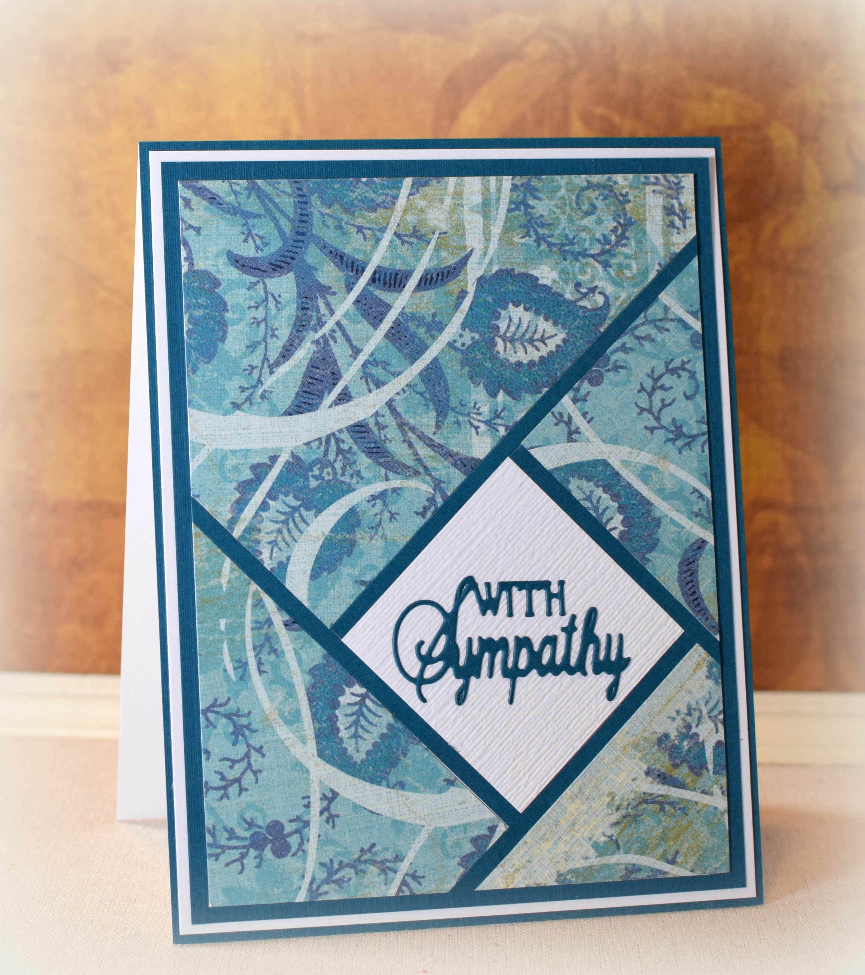 For those of you not familiar with a “One Sheet Wonder” project, the template tells you how to cut the sheet of patterned paper and gives suggestions for how to use the pieces on cards. You choose the other paper, die cuts, stamped images and/or embellishments to complete the cards. You can follow the suggestions/sketches exactly, or you can use them as starting points and do as you wish. (I followed all of her sketches for my cards.)