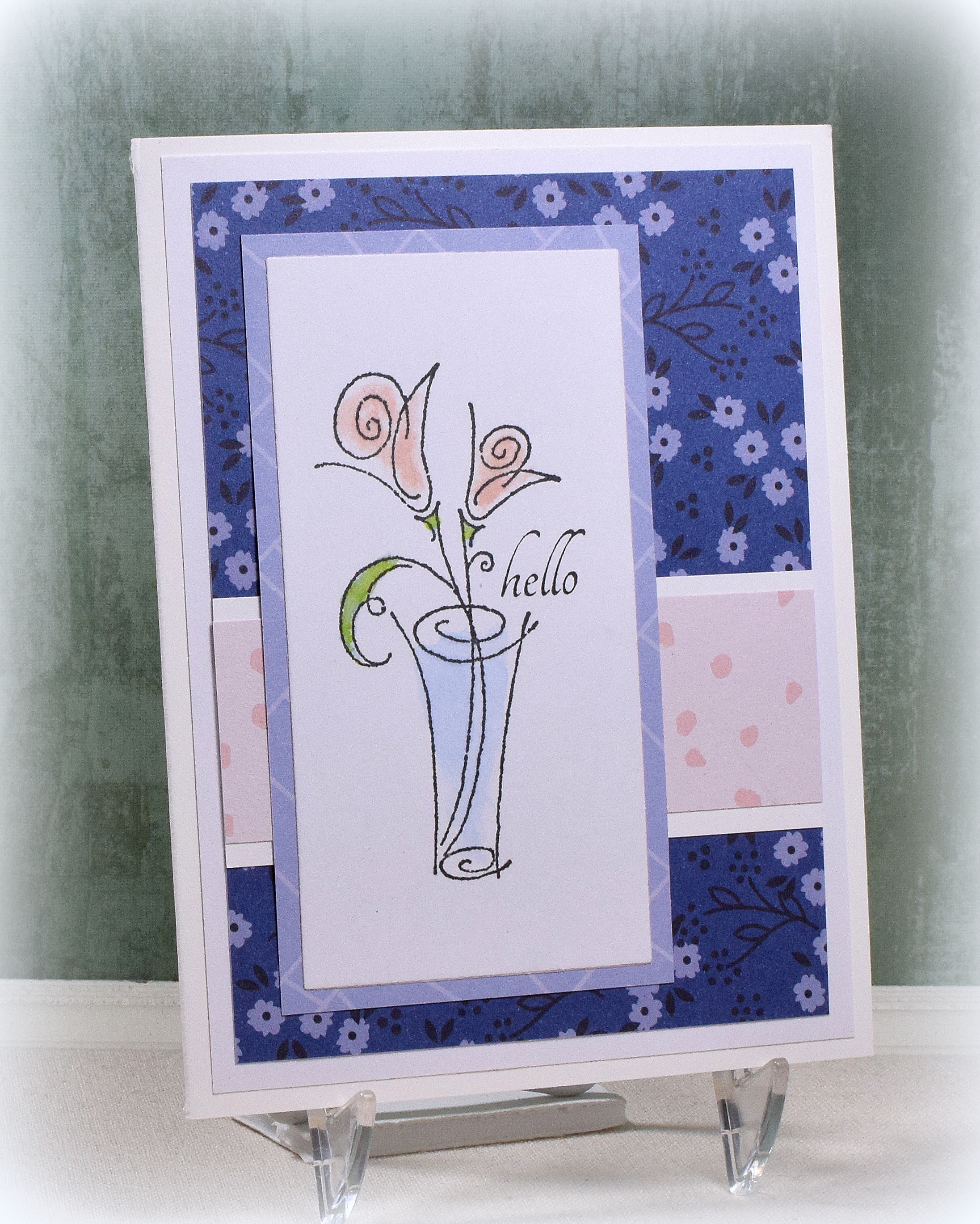 In one of the Spring Card Camp II online classes I recently viewed, we were encouraged to try weaving on our cards. The class samples were done with colored strips behind cut-out windows on the card front, but I was curious to see what it would look like to weave a stamped image, and this big scene stamp seemed like a good one with which to try.