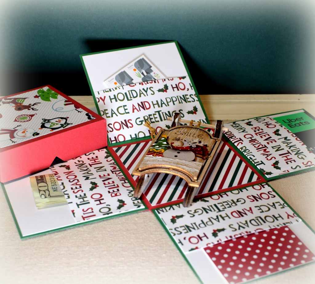 Here’s another explosion box with pockets on the inside for gifting cash or gift cards (or anything small and flat).