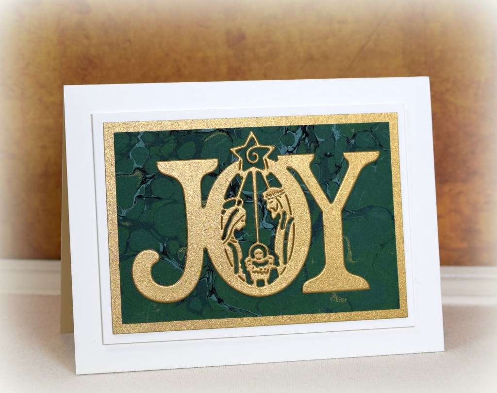 This final sample was made with one die cut and the same papers from the first card above. The die is “Joy Nativity Die” from Cottage Cutz.