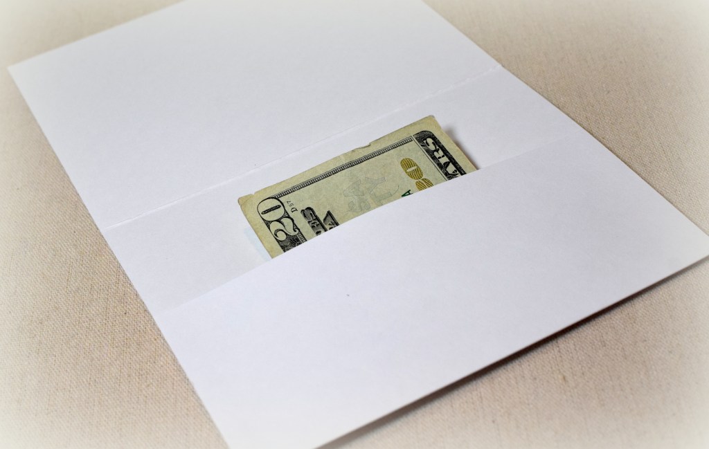 The first card is for giving restaurant gift cards or cash for meals.