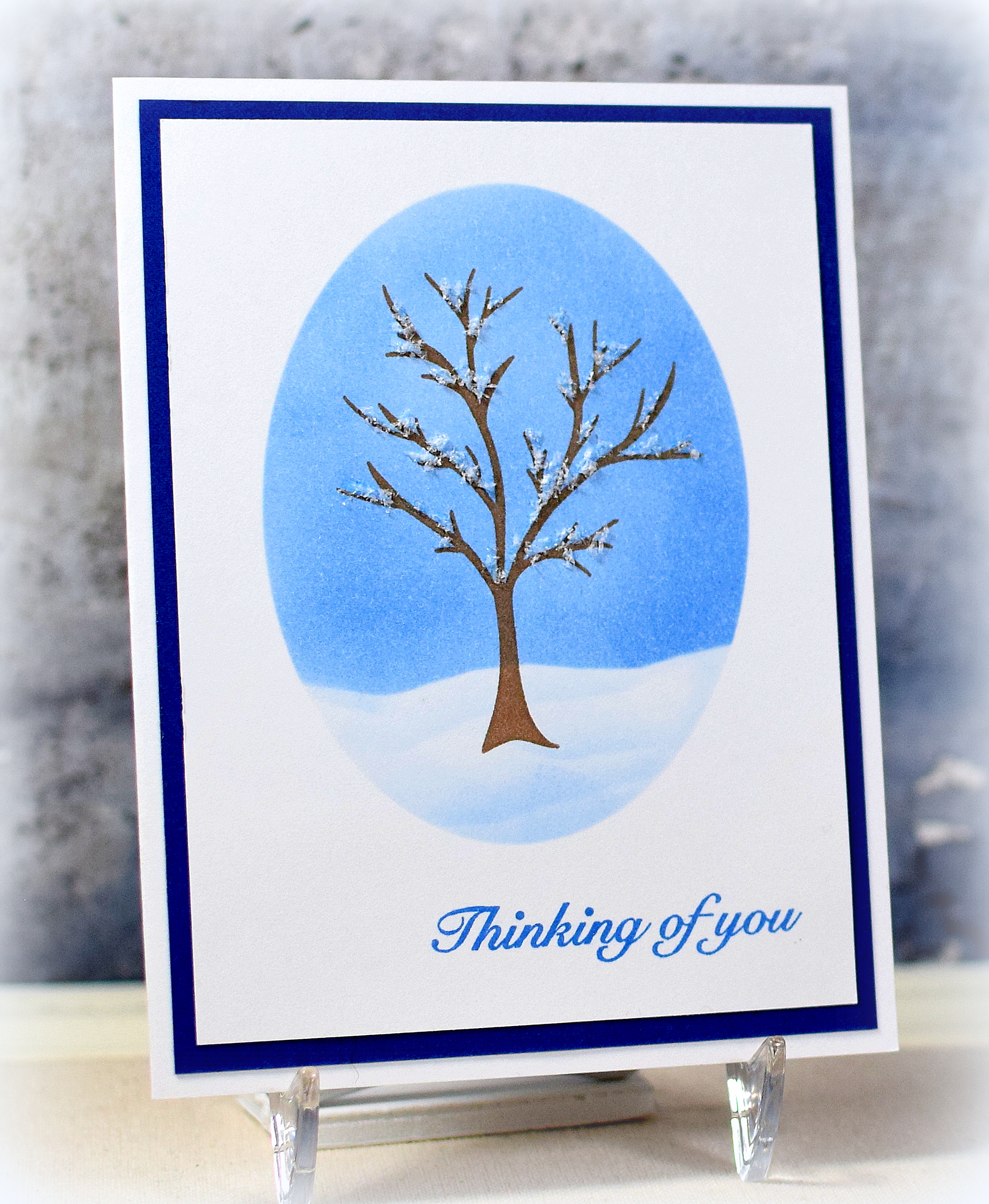 In my last post, I showed two card samples/options I created for my emboss-resist technique class. Here is one more sample with a winter theme.