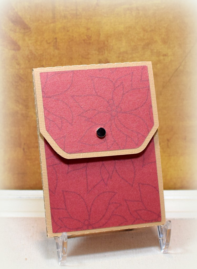 The card stock I used is white core. I would NOT use this in the future as you can see the white on all the edges and in the cracks of the embossed panels. 😦