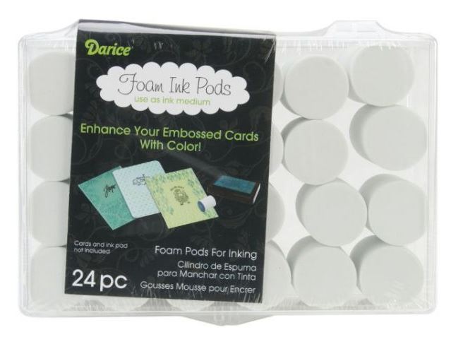 After I embossed my panel, I lightly rubbed over the raised portions with ink and a Darice Foam Ink Pod. Because these pods are kind of hard/firm (unlike a sponge), I find it easier to keep the ink only on the raised surfaces and not in the “nooks and crannies” around the embossed parts. (These pods can be washed with soap and water and reused.)