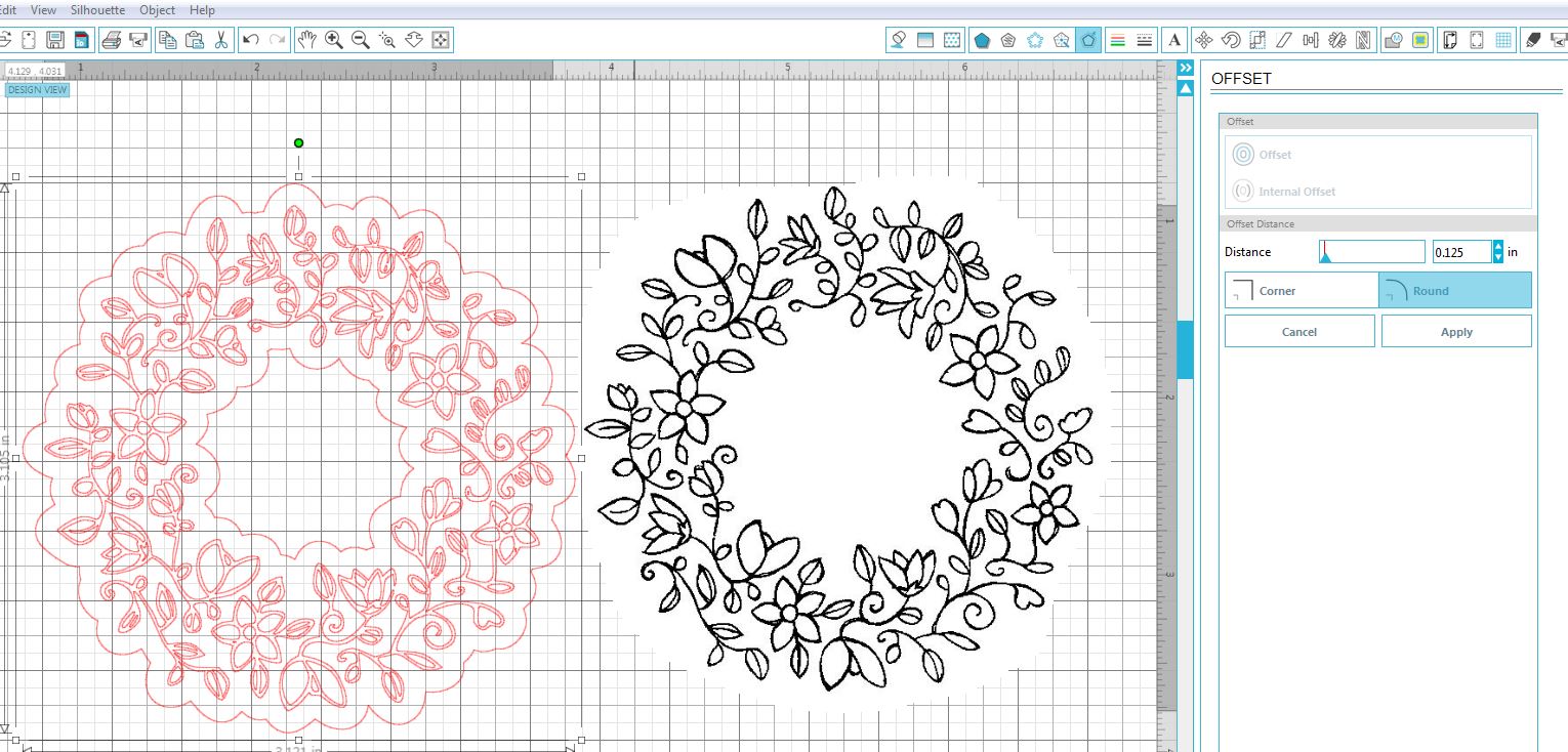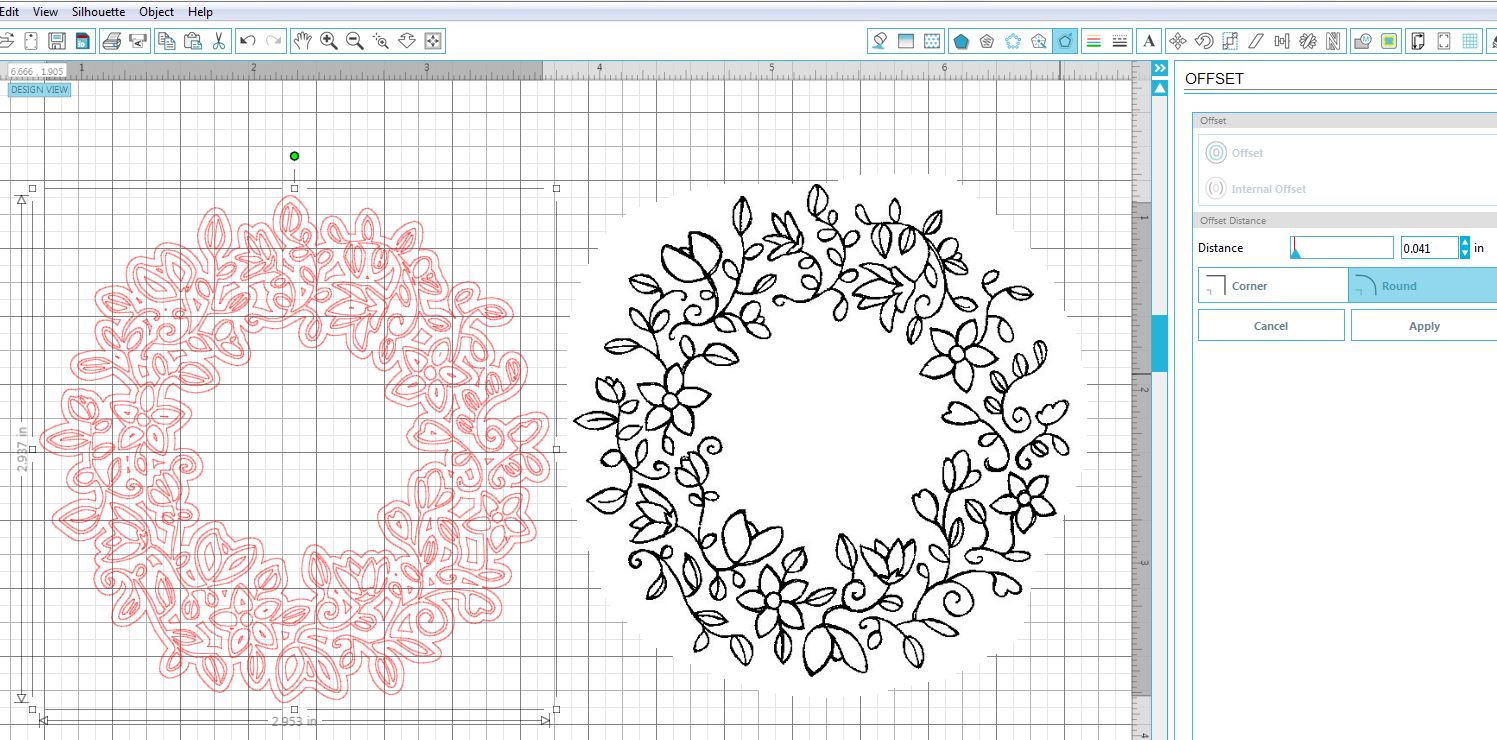 14. Change the value of the internal offset to match the number you used to get your original offset. Recall, mine was 0.020 from step 9 above. (Highlight the offset and internal offset. Click on the “Object” tab and click “Release Compound Path” to separate the two parts. Then drag the outer piece (outline) away.