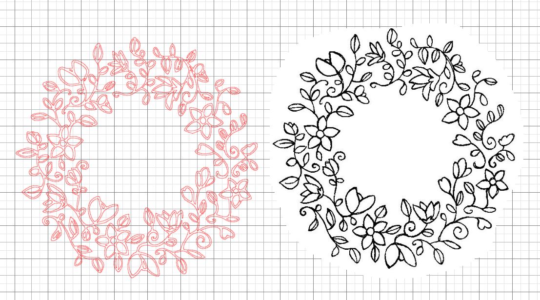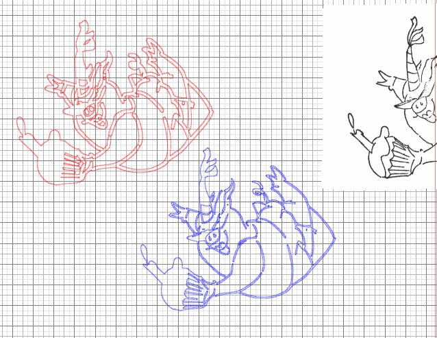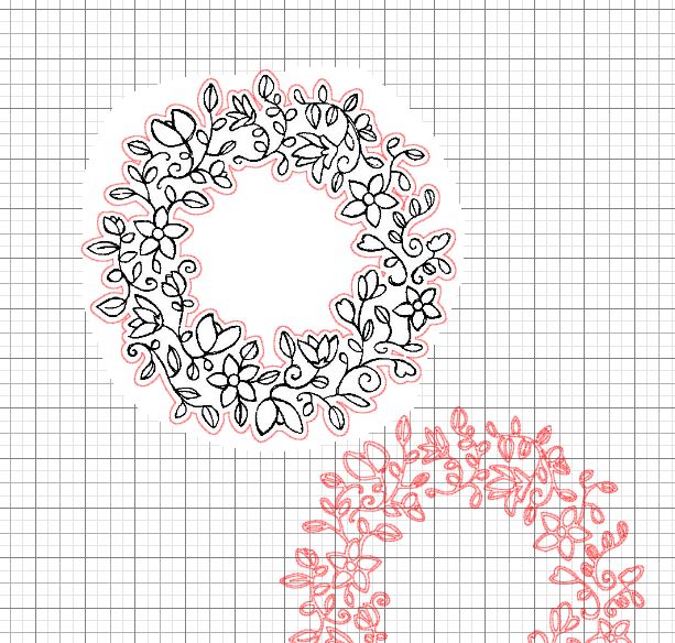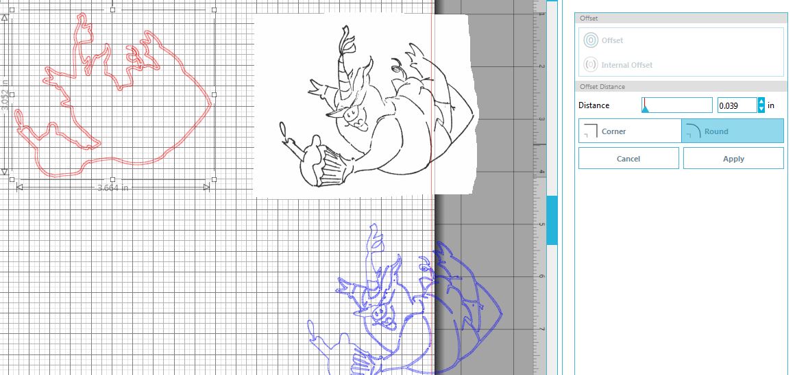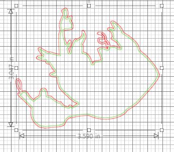15. The inside (internal offset) should be about the same size as your original scanned stamped image, without the gaps. (I made my green lines a little thicker so you can see them easier here.)