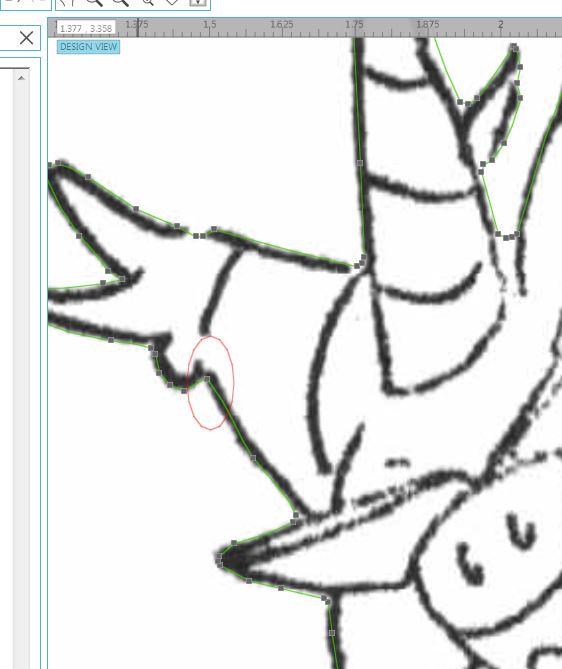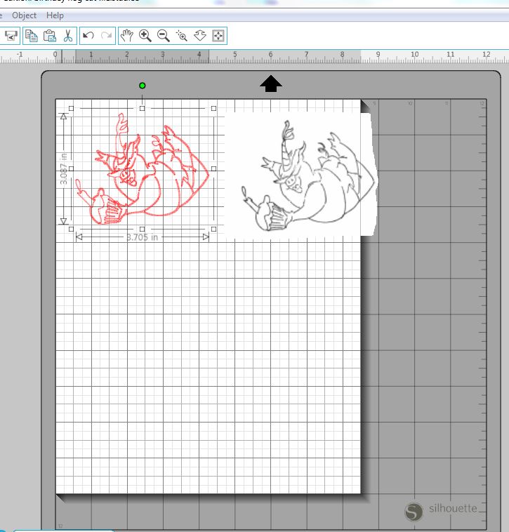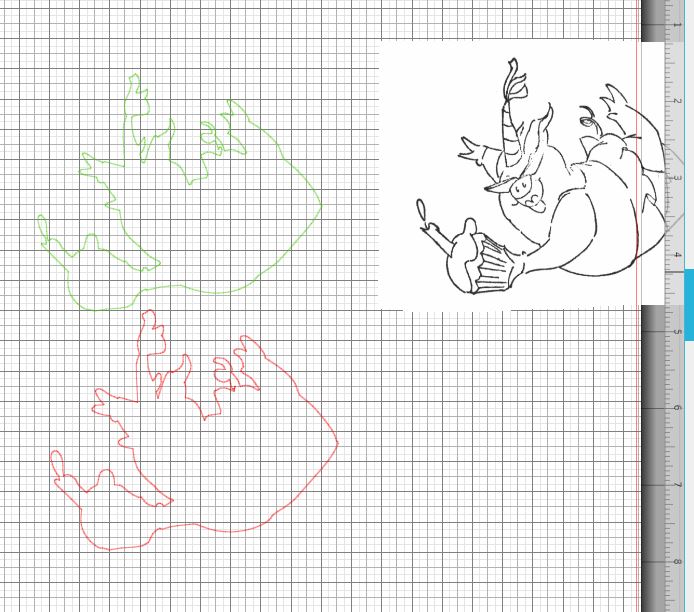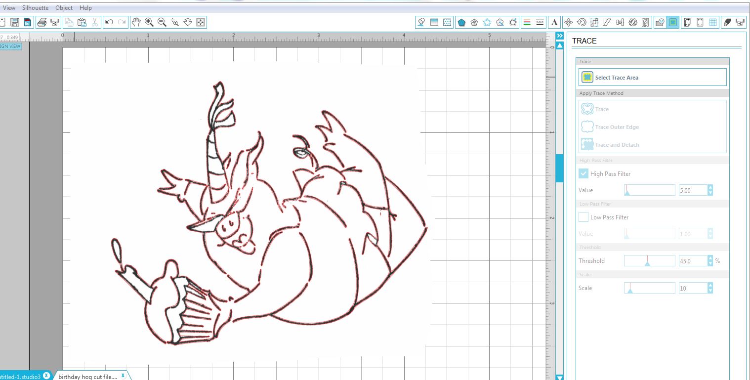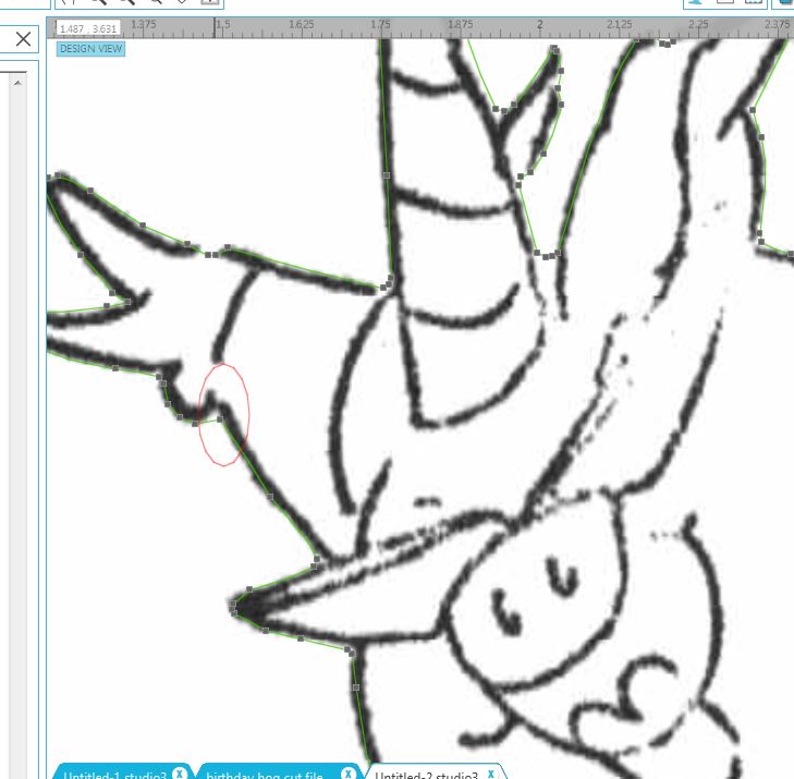 Notice that the red cut lines are not perfectly lined up with the black stamped lines of the image. In some cases, there are broken lines. (Click on the photo to see what I mean.) In order to get a die cut with a complete outline and that fits the stamped image perfectly, you need to clean this up a bit. There are a few ways to do this. I referenced a series of video tutorials in my last post called Tracing Without Tears in Silhouette Studio which I found extremely detailed and helpful in understanding the “Trace” feature of the software. (Videos 7 and 8 specifically talk about point editing.) If you don’t want to get as involved in the design process, try this: