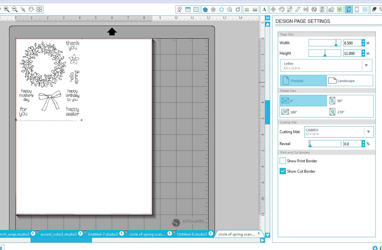 In my last tutorial called How to Make Silhouette Die Cuts for Your Stamped Images, I explained how I make die cuts with small borders around my stamped images using my Silhouette electronic die cutting machine and the “trace” and “offset” features in the Silhouette software. (I use the Designer Edition.) Sometimes, it is necessary/desirable to create a die cut where the lines of the stamped image go right to the edge of the die cut, with no border. This is a follow-up tutorial explaining how I create this type of die cut.