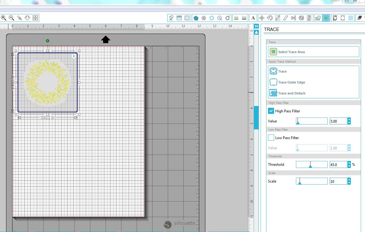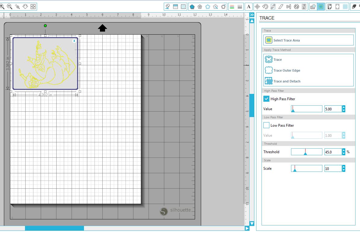 a. Open “Trace” window, select “Select Trace Area,” and drag a box around the image you wish to trace.