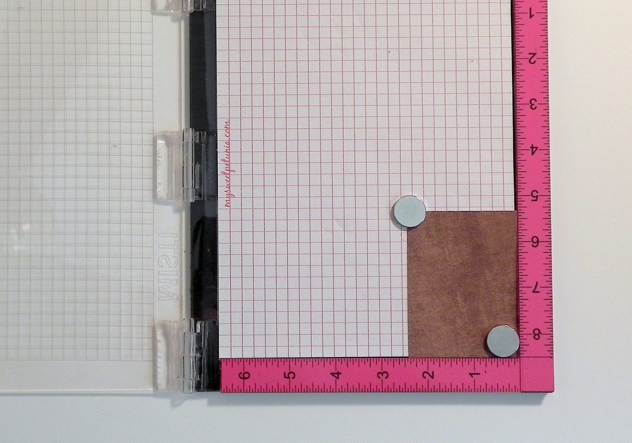 Now, let’s look at an example of something very delicate and thin like die cut lettering. I placed part of this scrapbook page title on a scrap of paper with a line to make sure it’s straight. For this example, the “W” was cut separately from the rest of the lettering, but it needs to be placed properly as part of the word. (The dot over the “i” will be added last.)