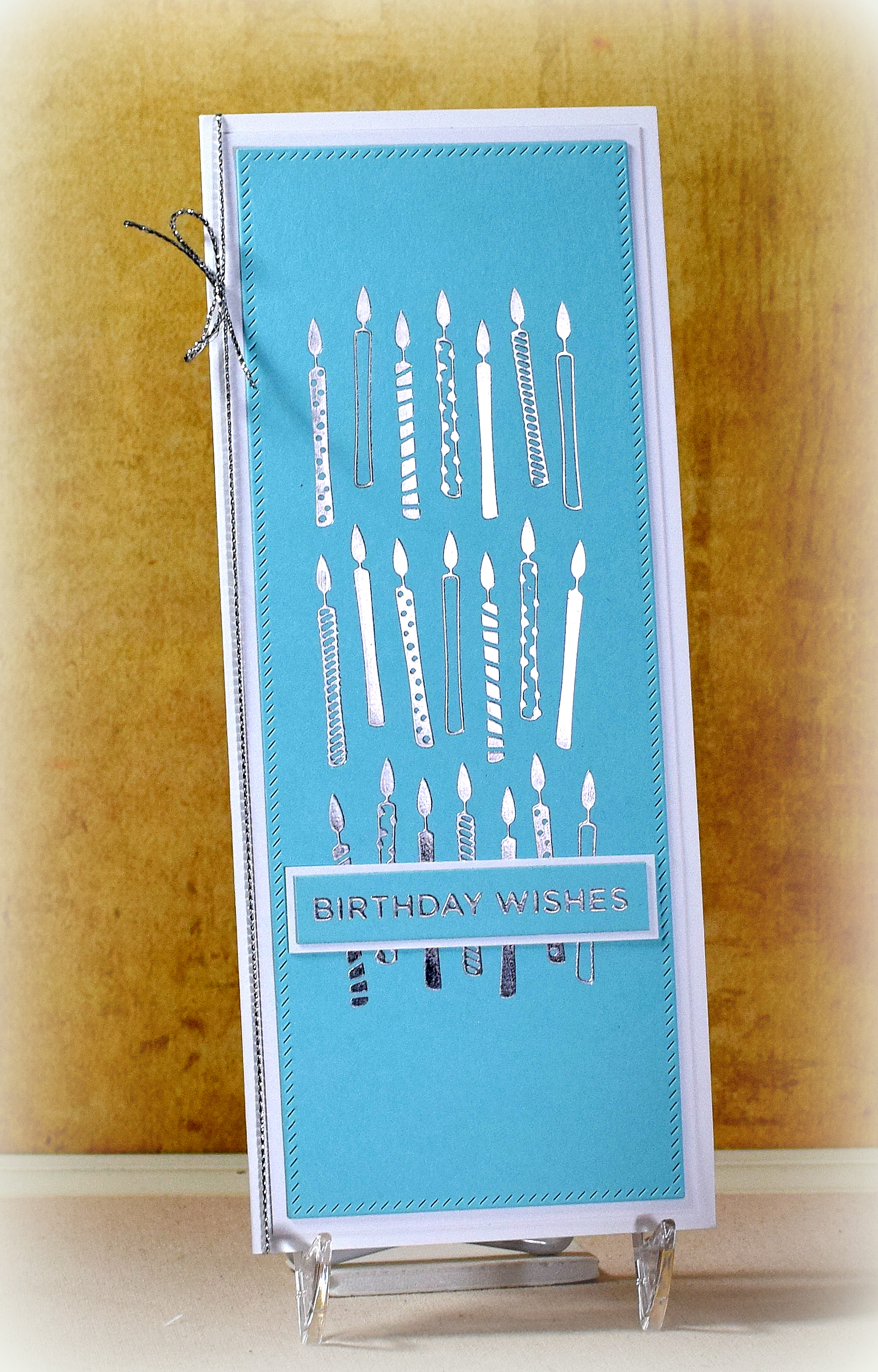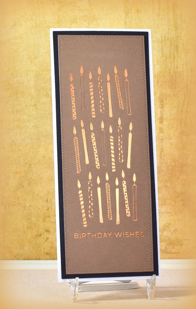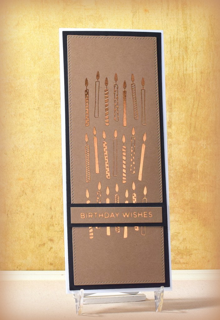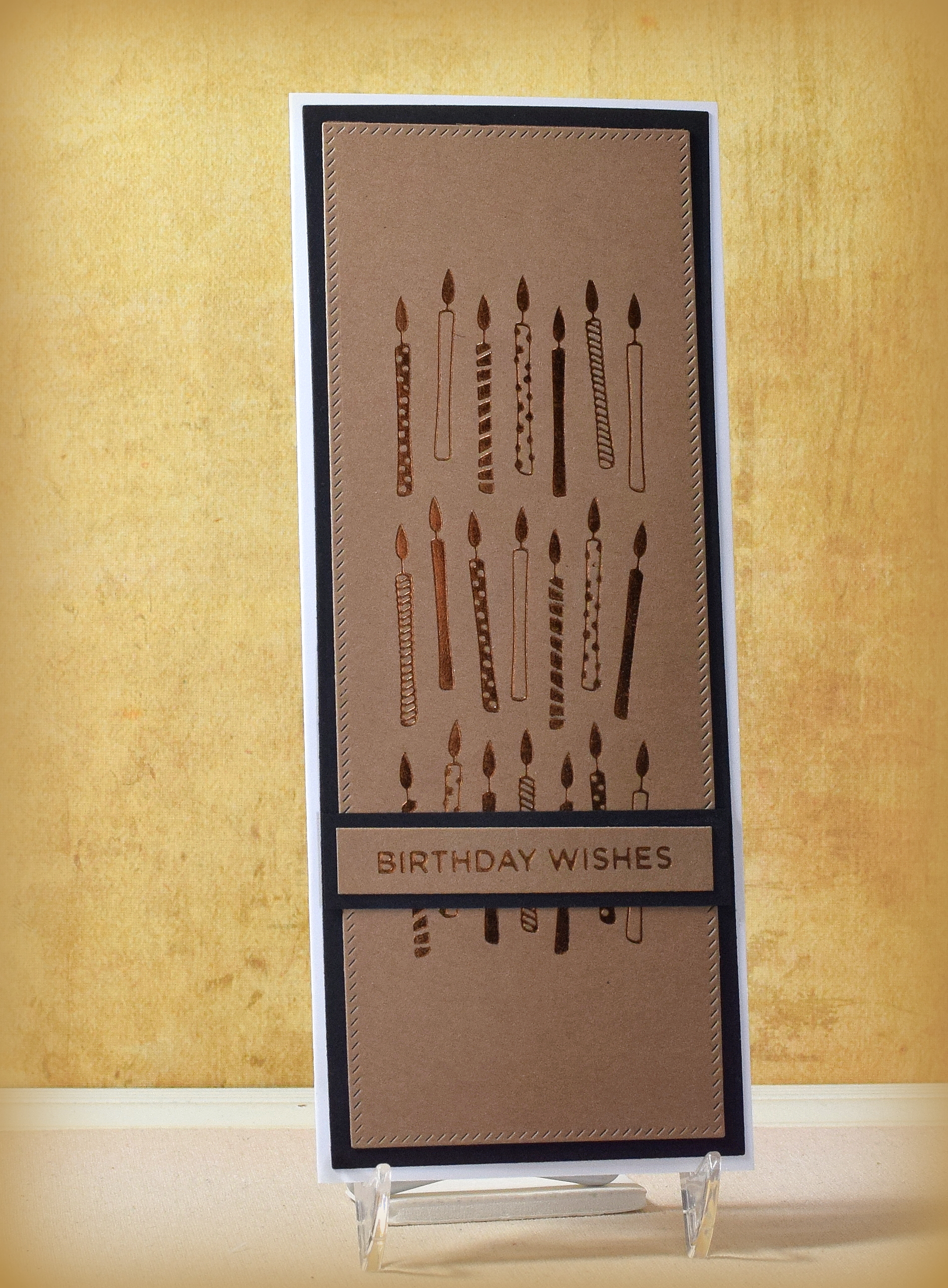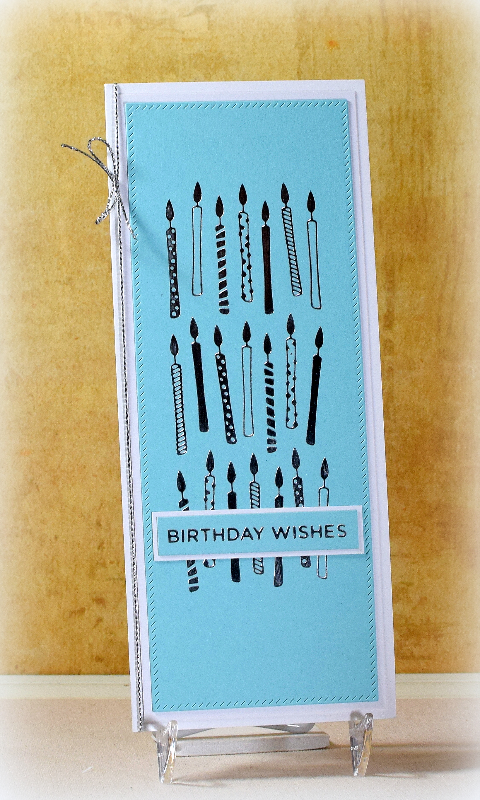 The shimmer card stock (2nd sample) is “White Pearl” by The Paper Studio. (It’s actually an off-white but so elegant in real life!) For the first sample, I used plain white and embossed the bottom half of the gown with a 5×7 Damask Background embossing folder by Darice. I also used Gina K Designs Slate and Black card stock.