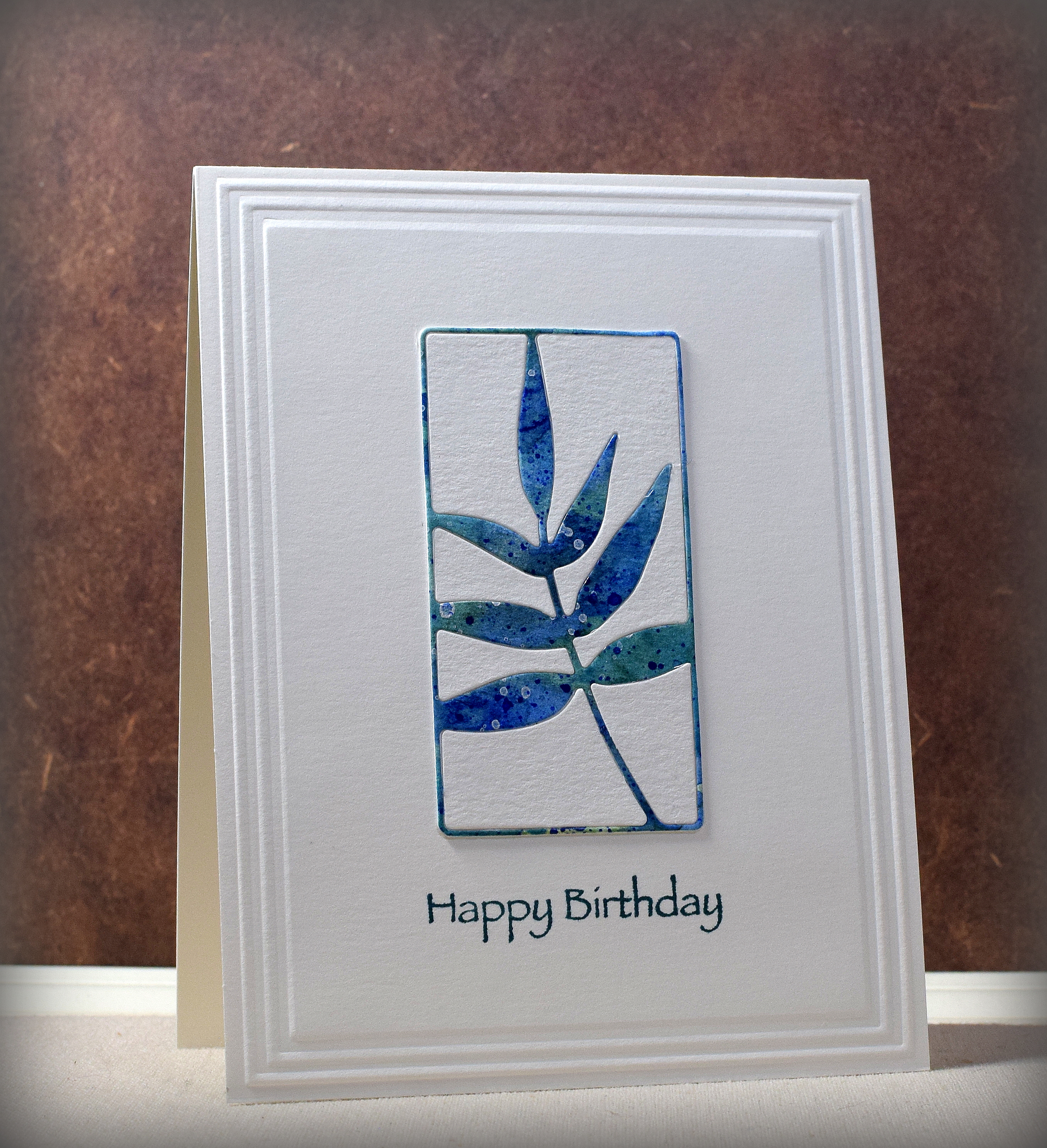 The pierced nesting stars were unbranded. The greeting was cut with the “Joy” die by Impression Obsession (DIE436-D). The gold greeting on the first card was cut from a panel I painted with the same gold water color paint I used for the gold lines on my plaid panel. The other was cut from black card stock.