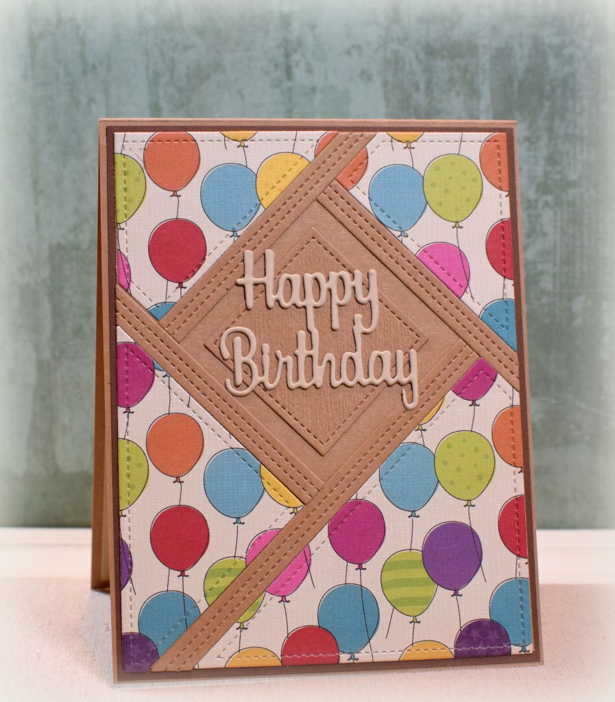 My “bridge” was created with a die from the Sizzix/Stampin’ Up “Star Blast Edgelits Dies” set (retired?) and the “Happy Birthday Script” die ((TAD0304) from A-muse Studio.