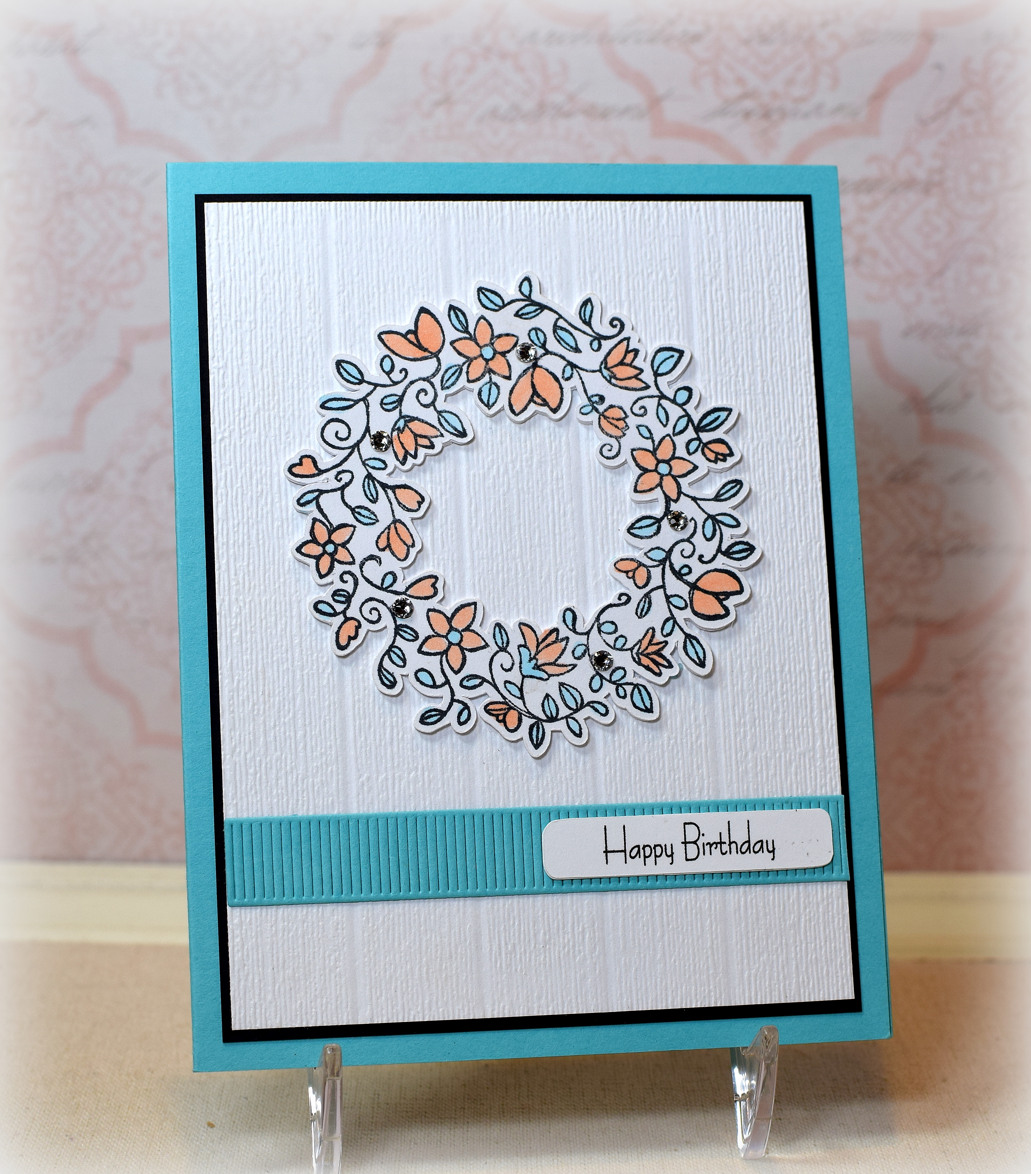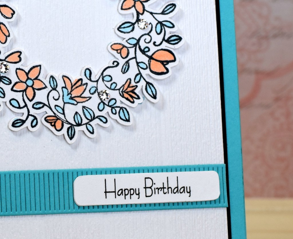 Recollections Grey Kraft card stock was used for the elephant’s body and the add-ons. The debossed side of the Darice Crackle embossing folder (retired?) was used for his skin texture, and GKD Stormy Sky ink was used on the edges to help the add-ons stand out against the body (since they were all the same color). I used a black marker and the leg die (as a stencil) to add the black spots.