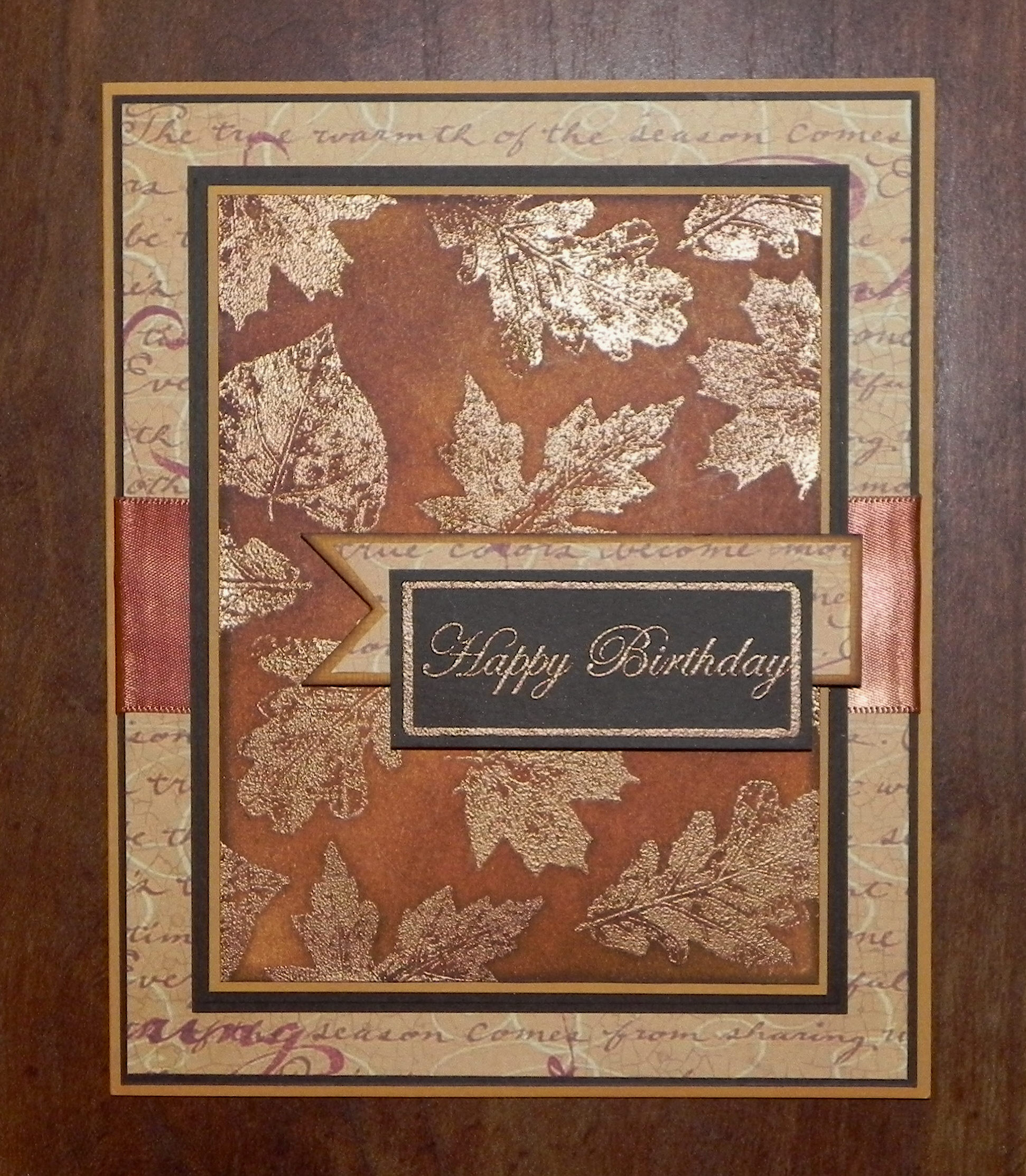 This card is being entered in the StampTV MIUM Challenge, “Falling Leaves” where the card should have a leaf or leaves as the primary image. (Sadly, this site is no longer active.)